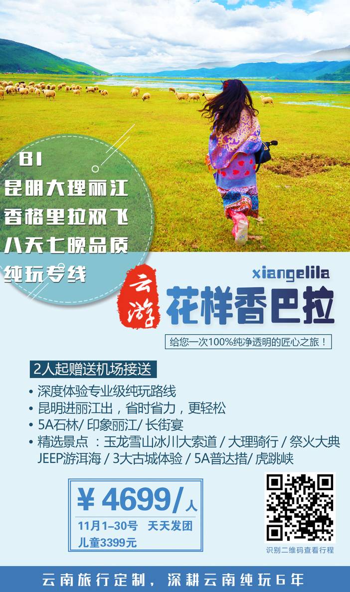 B1【云游·花样香巴拉】—昆大丽+香格里拉8天7晚纯玩(昆进丽出更轻松)