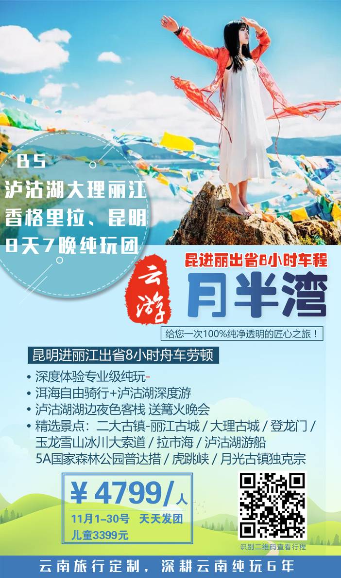 B5【云游月畔湾+香格里拉】—昆大丽+泸沽湖+中甸7晚8天(昆进丽出更轻松)