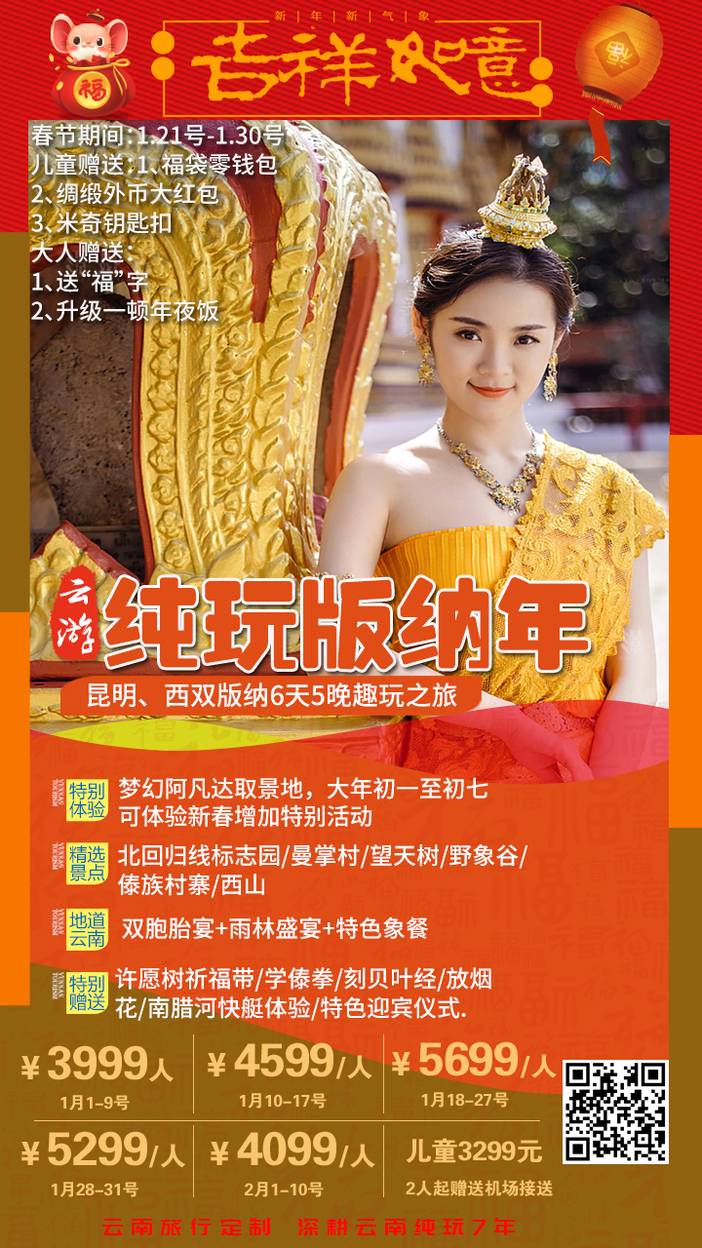 昆明、西双版纳6天,趣玩之旅(春节产品)
