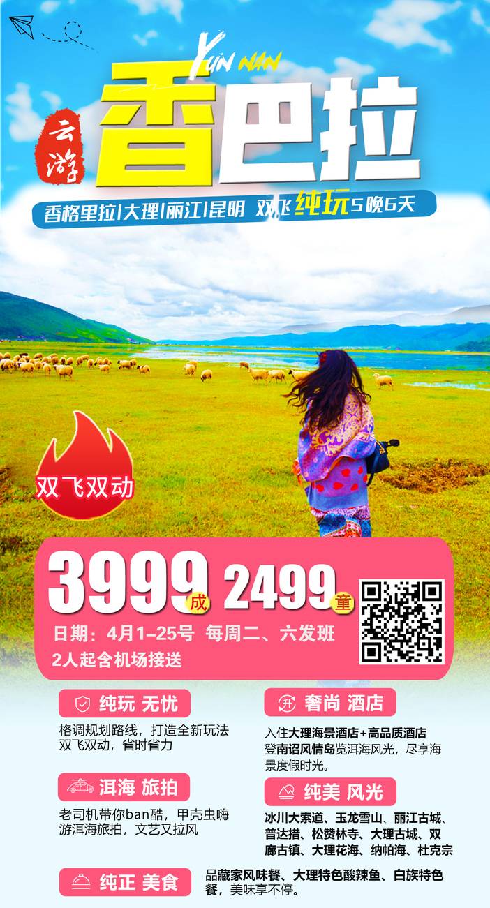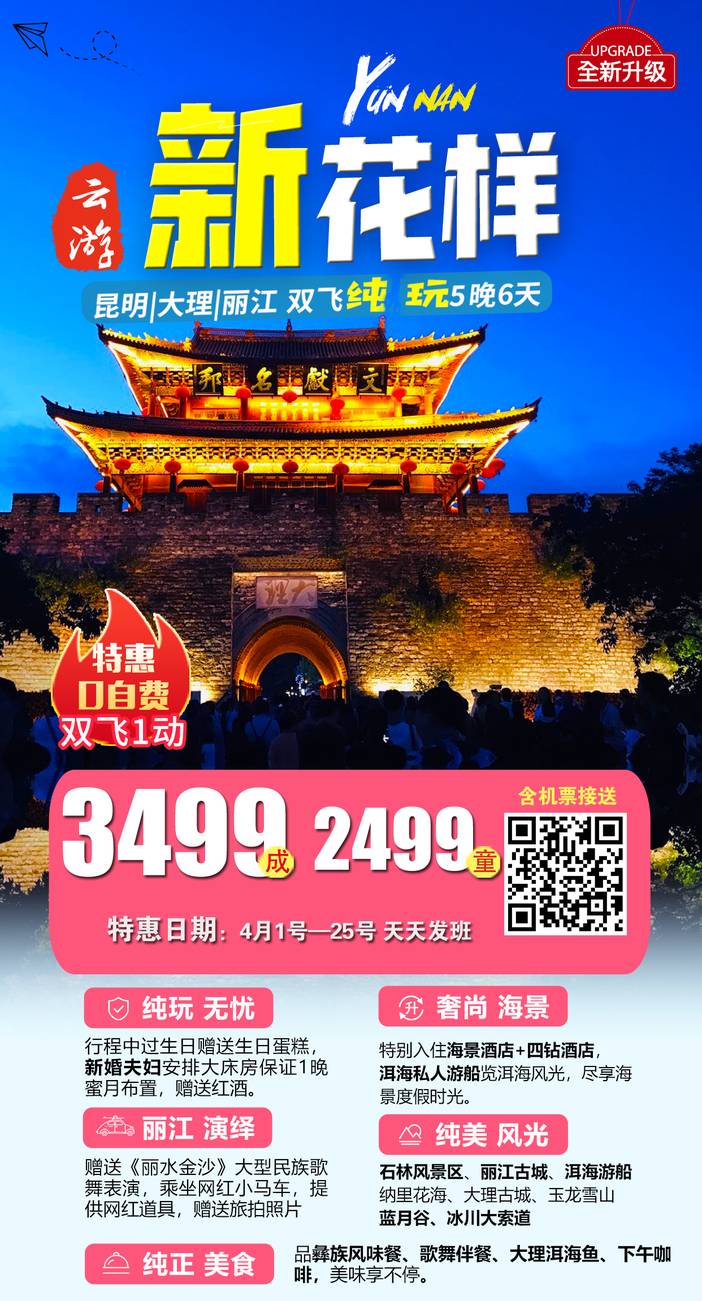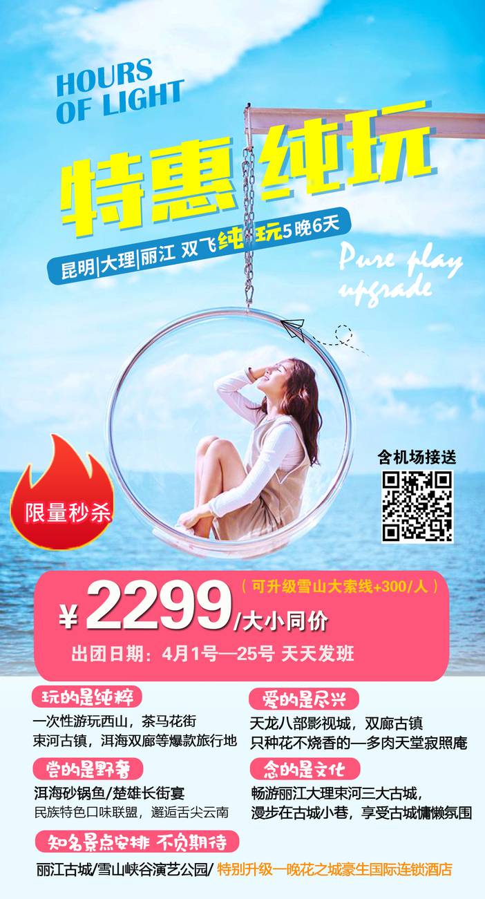 昆大丽双飞双动6日(真纯玩,无任何限制收客)