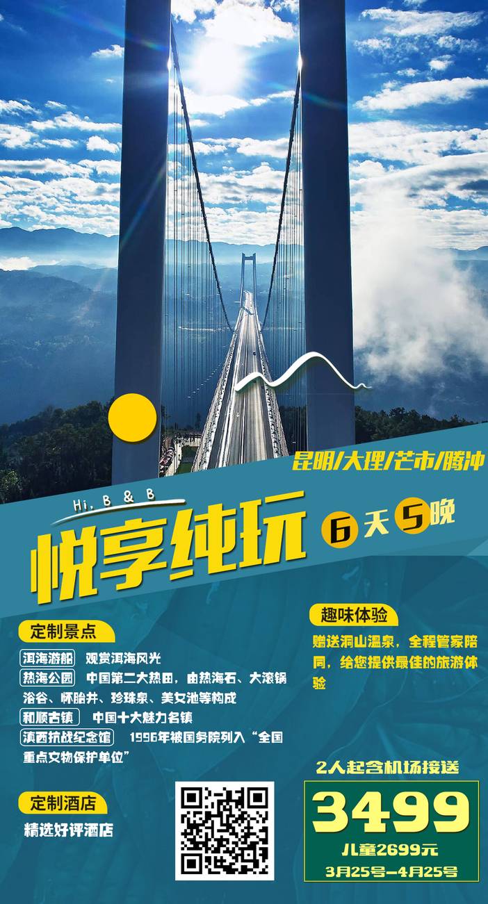 昆明/大理/芒市/腾冲双飞6天5晚(纯玩)