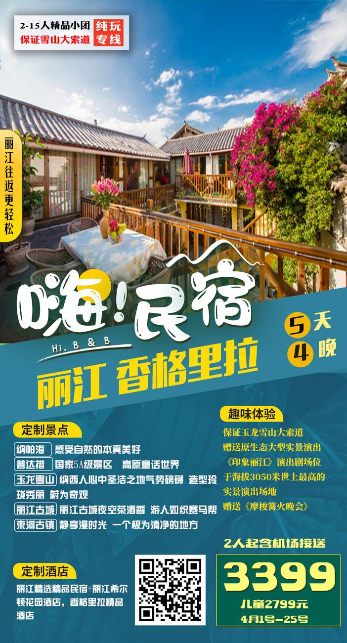 丽江香格里拉双飞5天纯玩(嗨民宿)