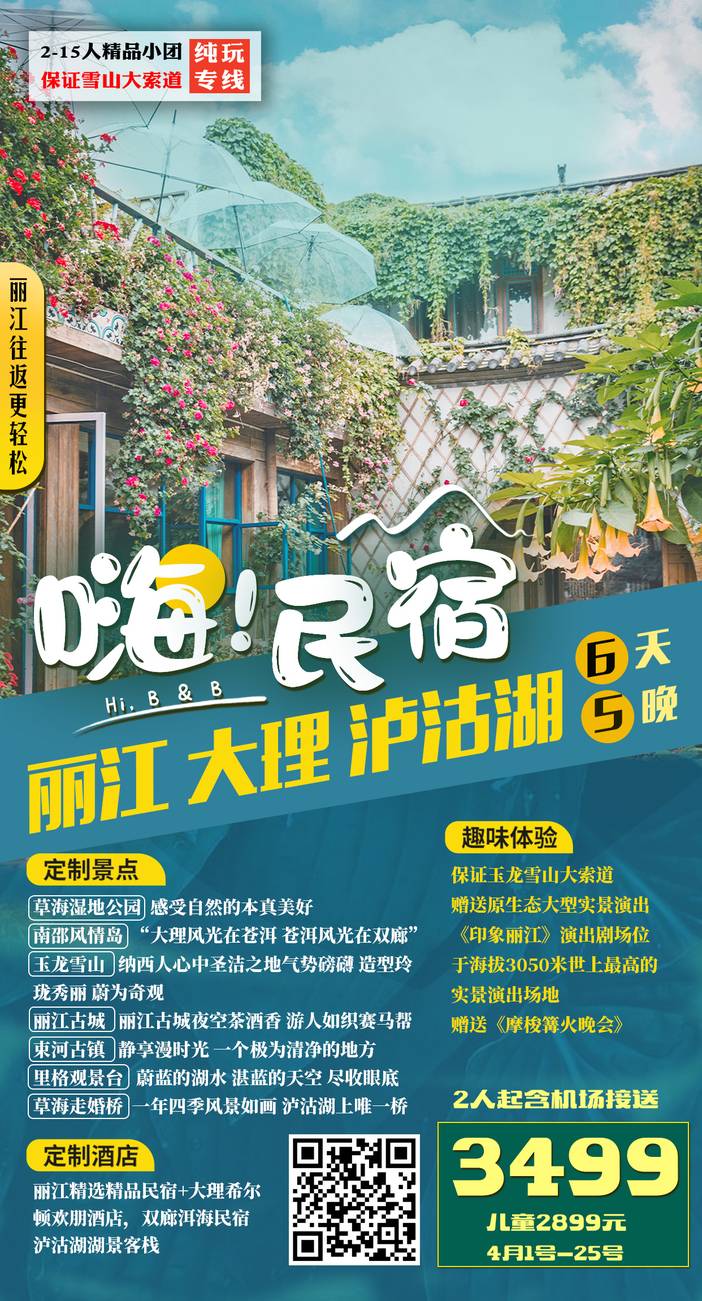 丽江大理泸沽湖双飞6天纯玩(嗨民宿)