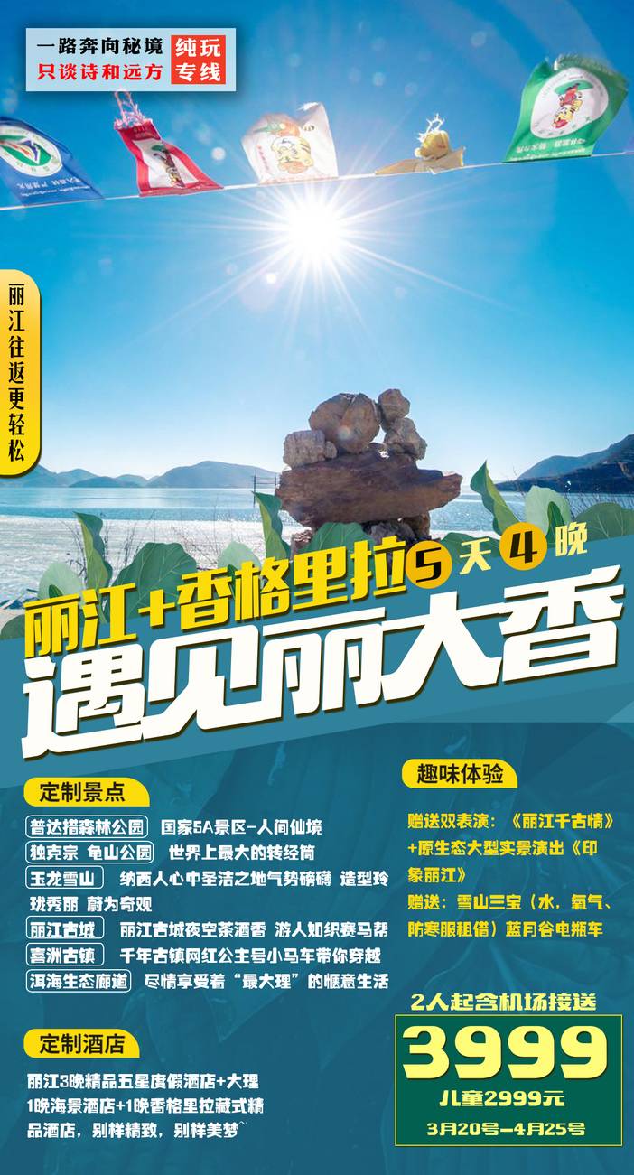 丽江大理双飞5天纯玩(赠送双表演0购物)