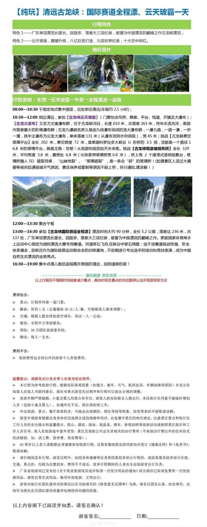 【纯玩】清远古龙峡:国际赛道全程漂、云天玻霸一天