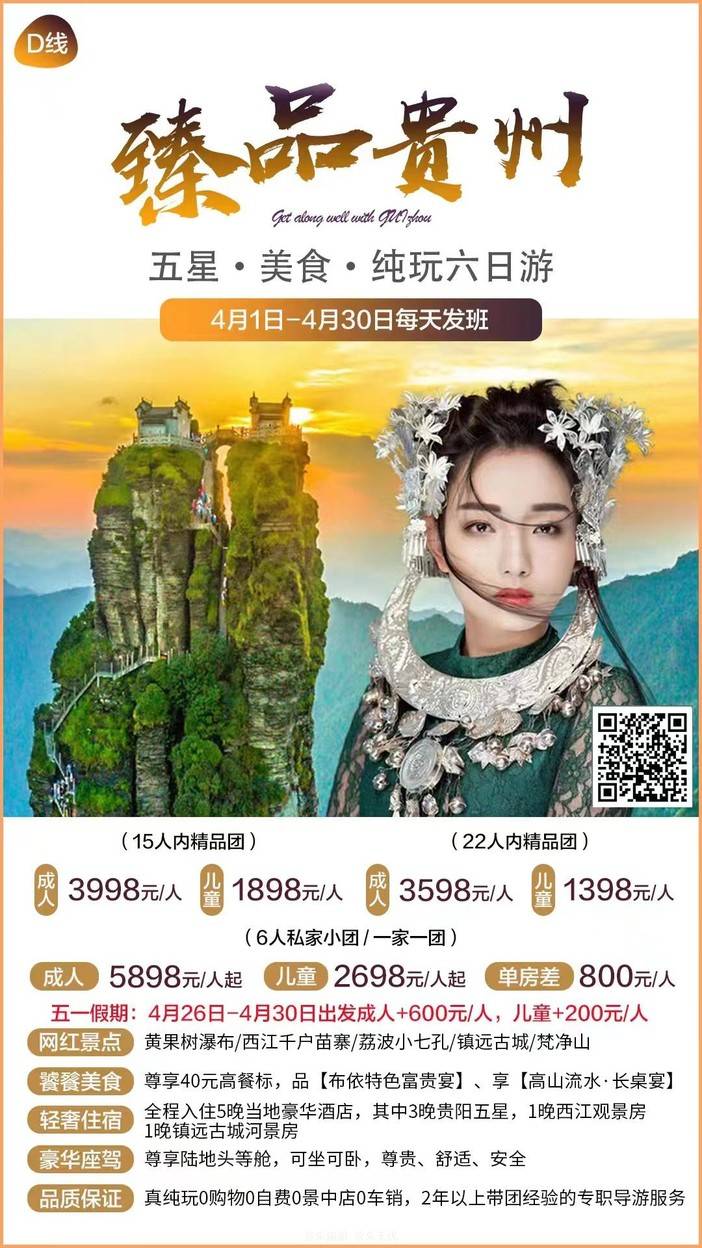 【五一贵州】高铁往返 黄果树瀑布/西江千户苗寨/荔波大小七孔/青岩古城/镇远古城/梵净山/下司古镇 [复制链接]