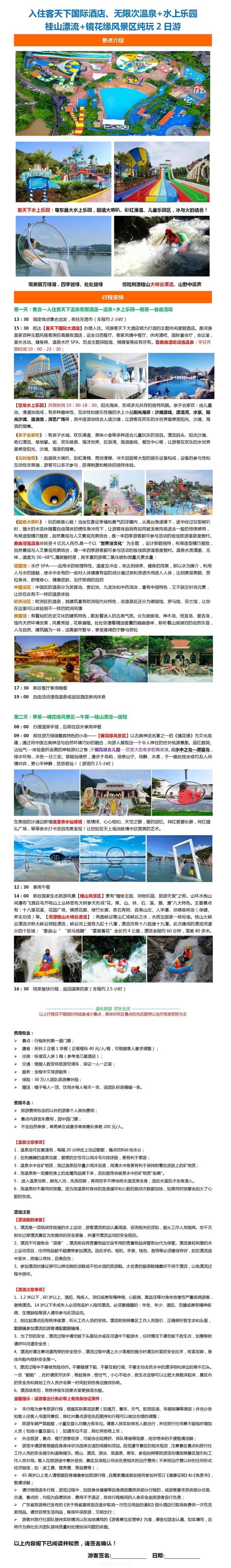 【河源】入住客天下国际酒店、无限次温泉+水上乐园、桂山漂流+镜花缘风景区纯玩两日游