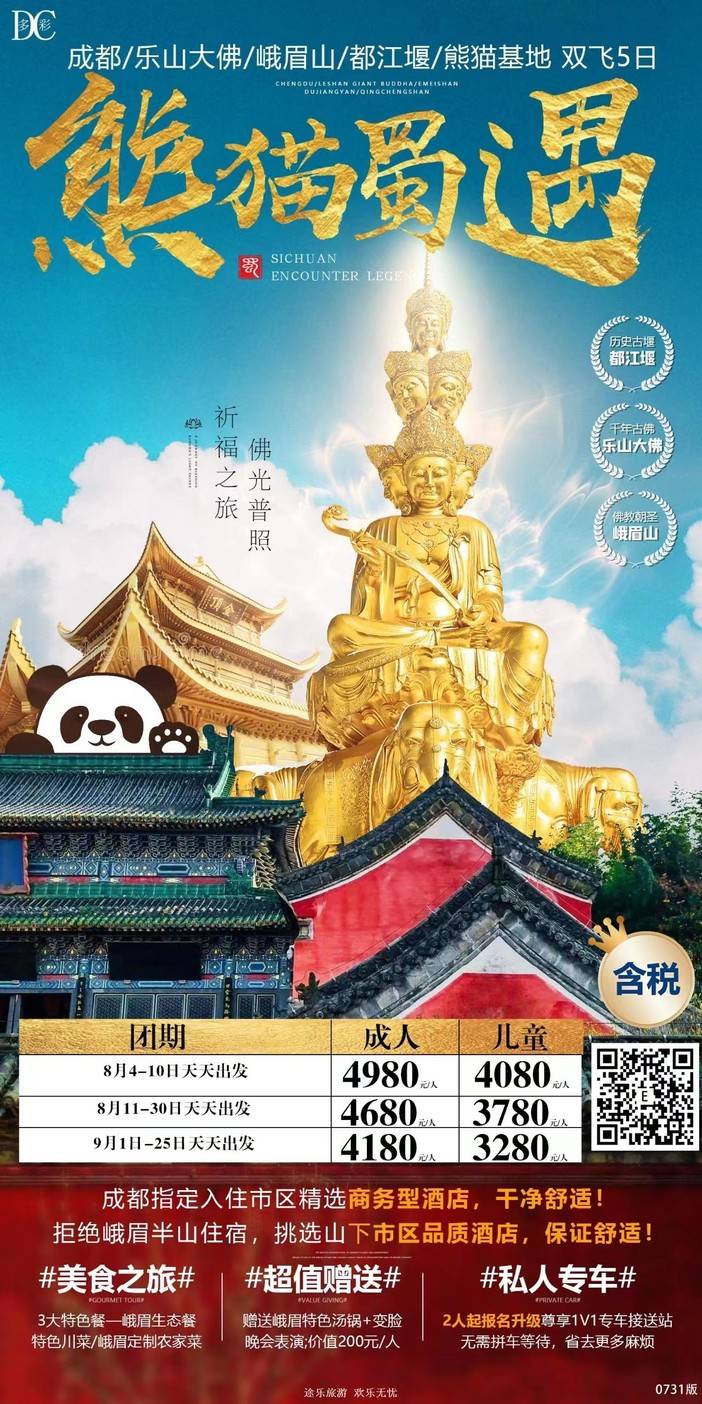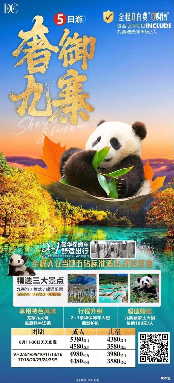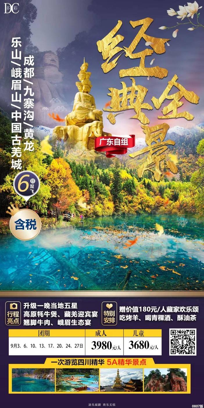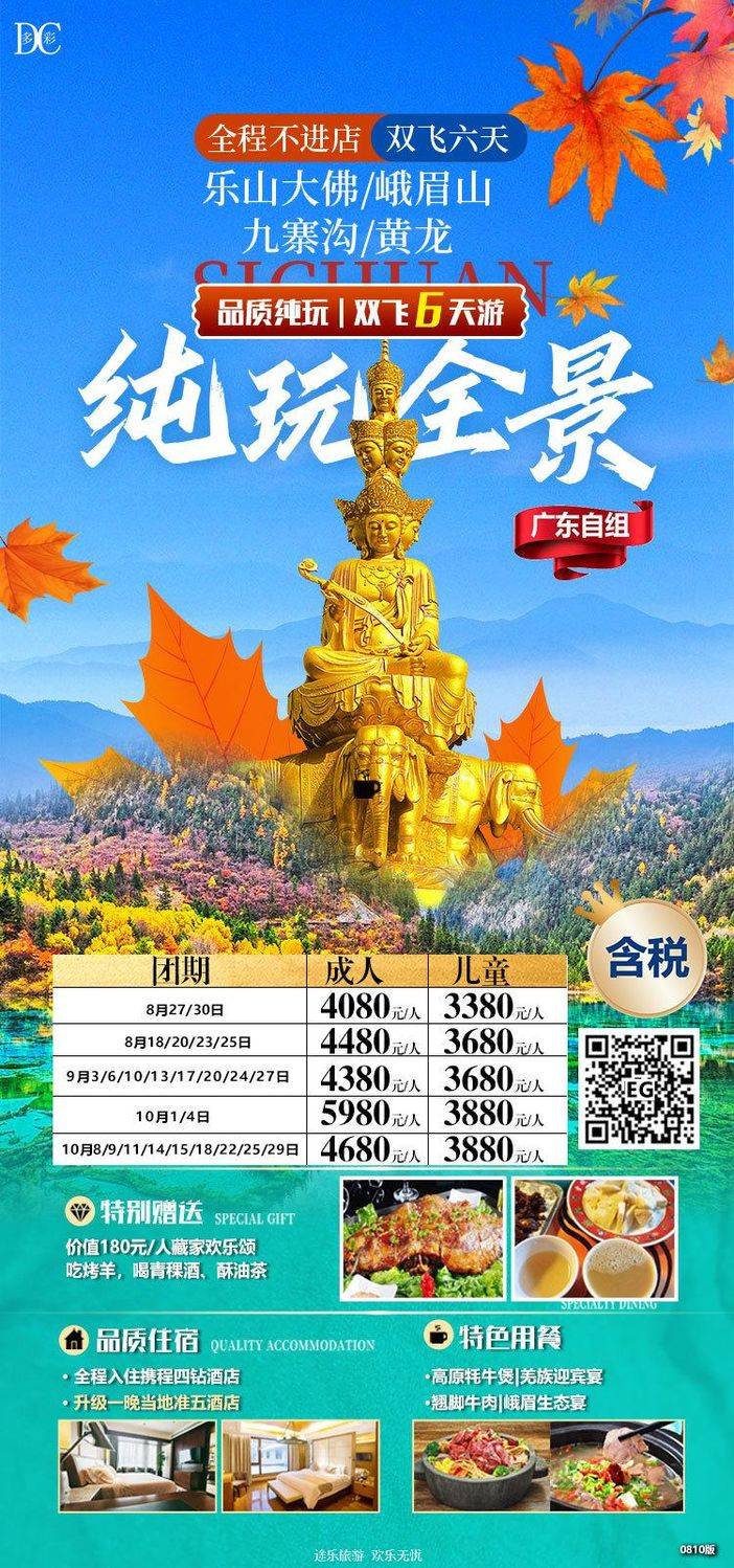 畅游九寨沟/黄龙/乐山大佛/峨眉山