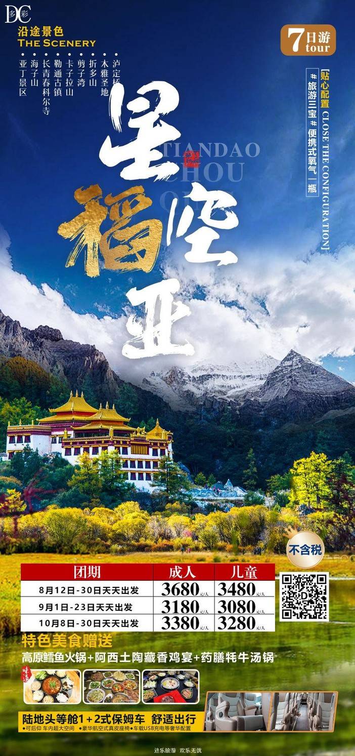 【壹品奢华】稻亚双飞七天1+1布局王的座驾保姆车2晚携程五钻+3晚四钻酒店鳕鱼火锅+土陶藏鸡宴+牦牛汤锅⚠赠送:U型颈枕+雨衣+便携氧气