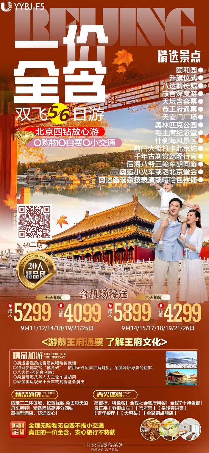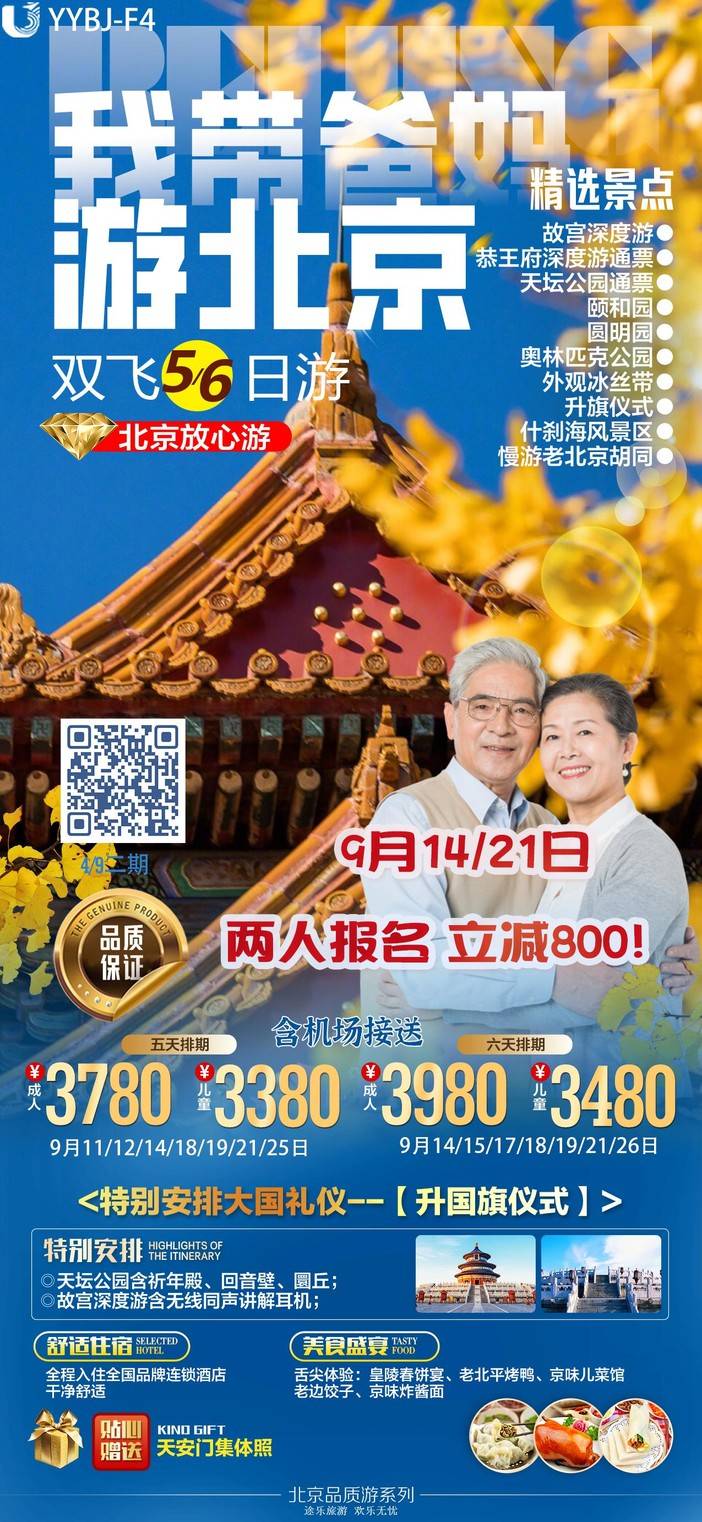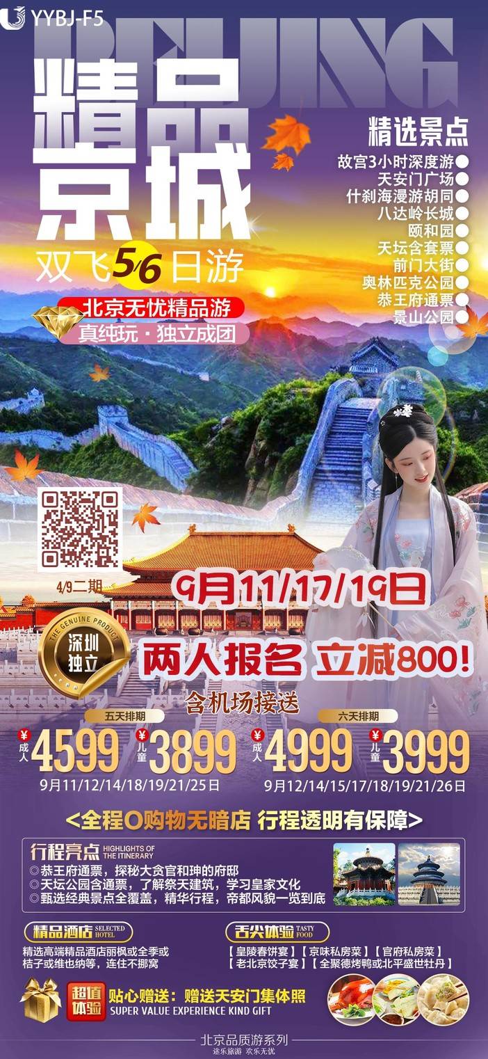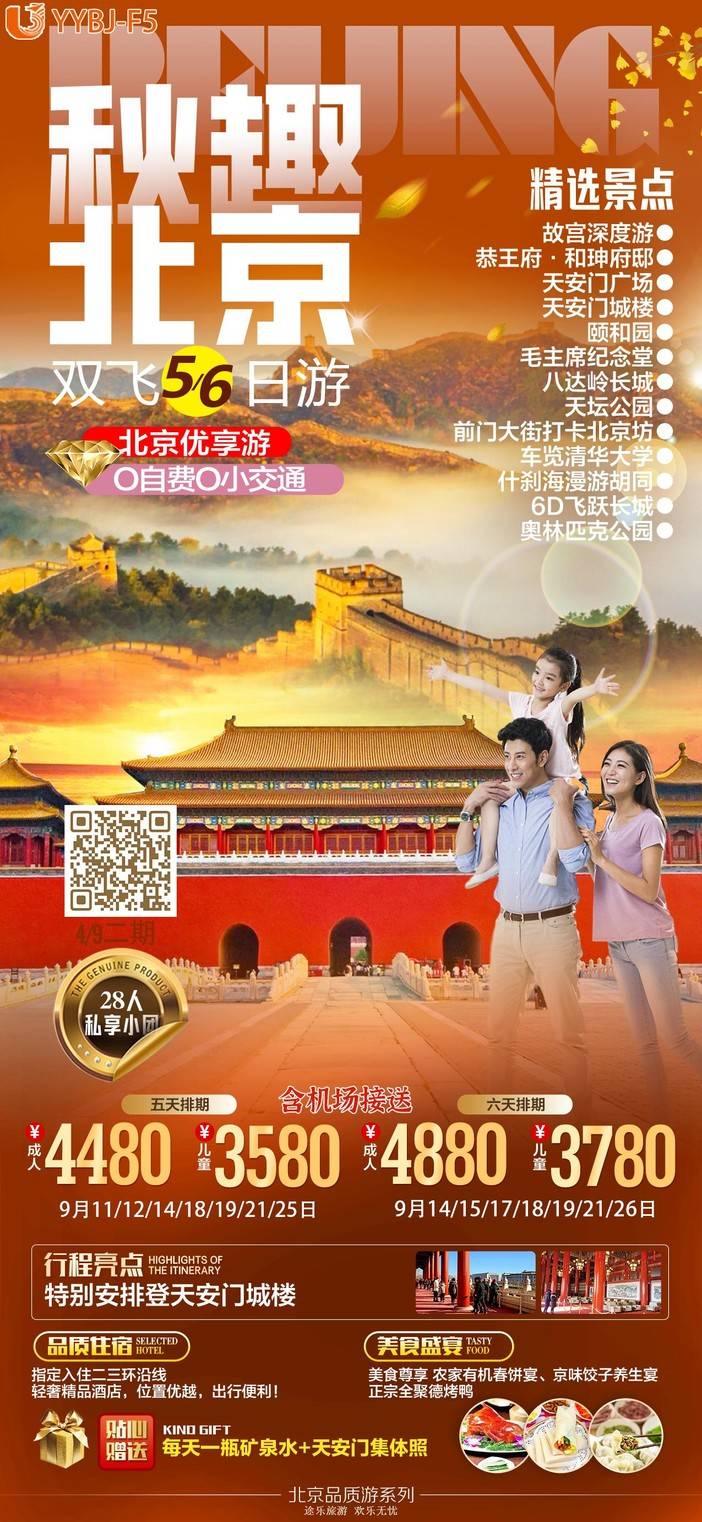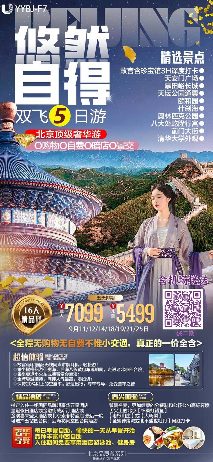【9月北京】天安门广场/八达岭长城/故宫博物院/奥林匹克公园/毛主席纪念堂/什刹海风景区/清华大学外观/颐和园 [复制链接]