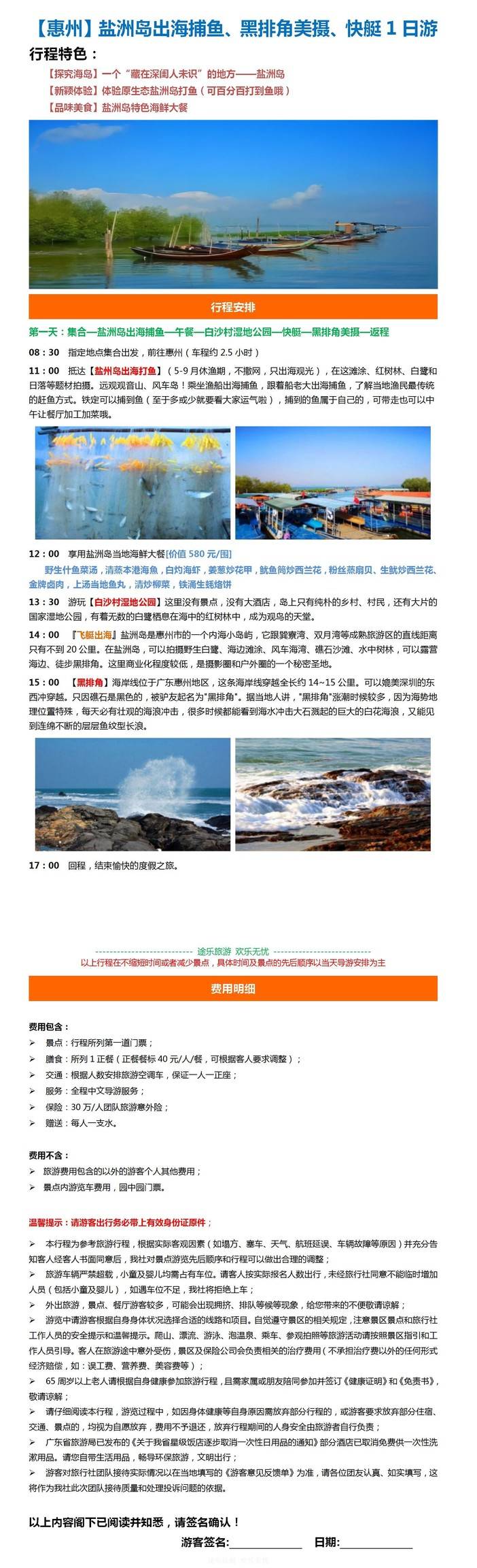 【惠州】盐洲岛出海捕鱼、黑排角美摄、快艇1日游