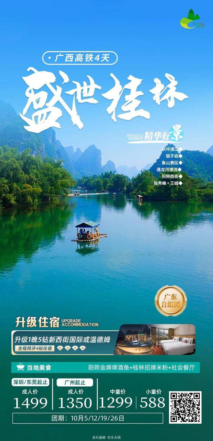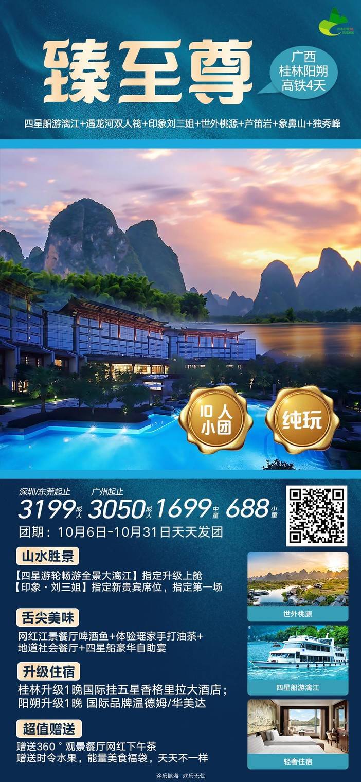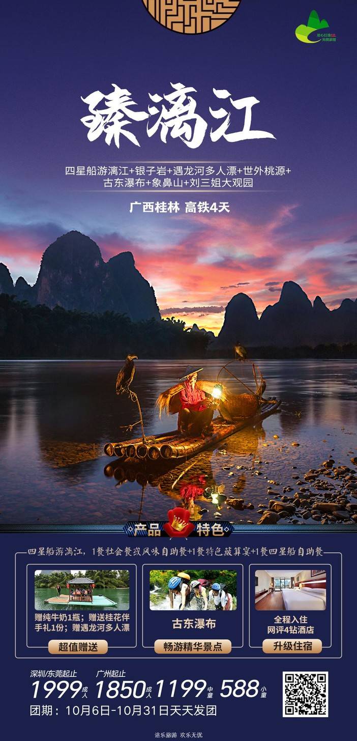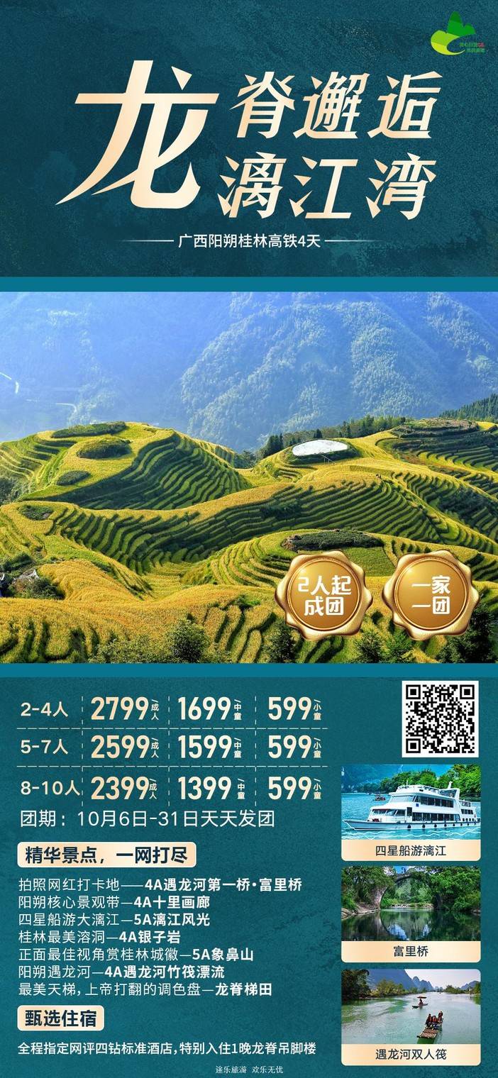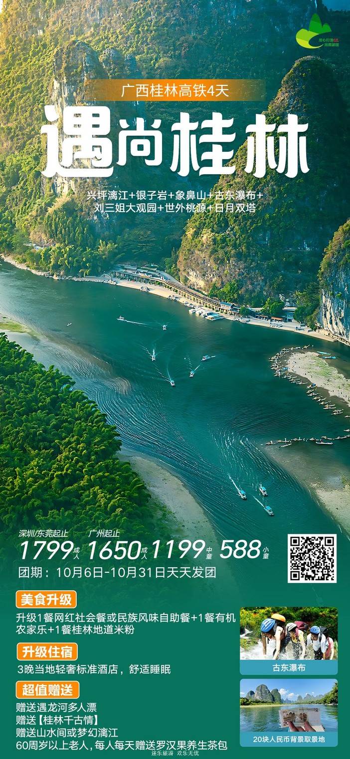 【10月广西】兴坪漓江/龙脊梯田/黄姚古镇/兴坪古镇/银子岩/象鼻山/遇龙河双人伐/桂林千古情/阳朔西街/十里画廊/山水间