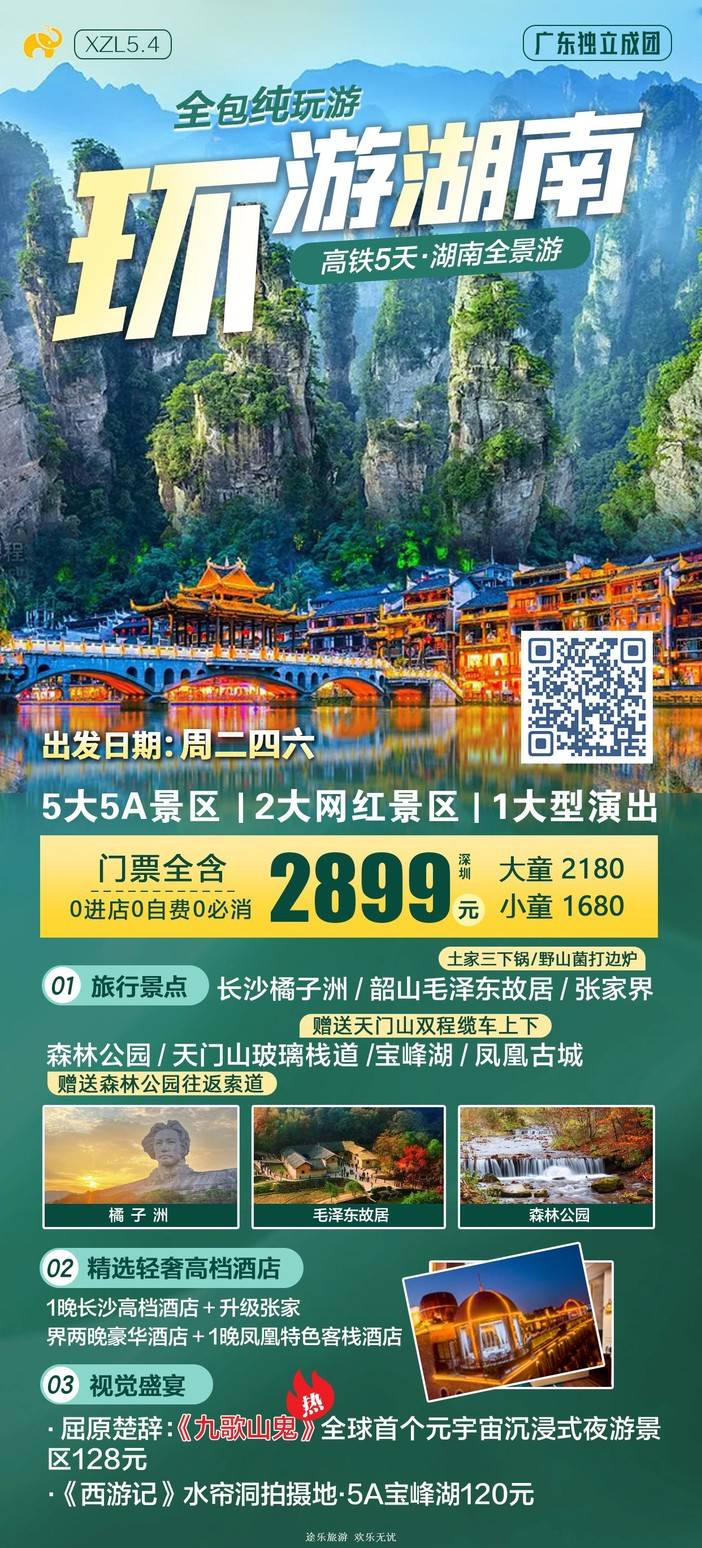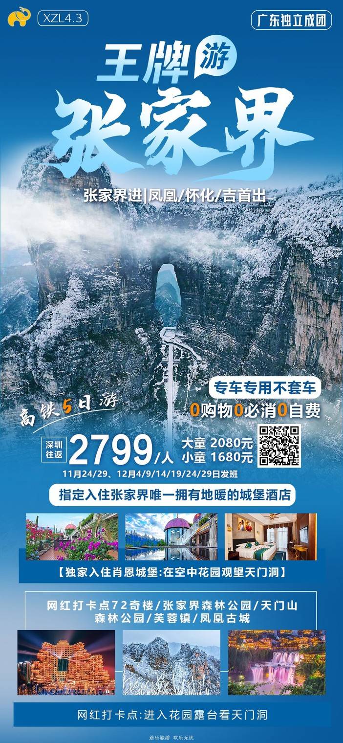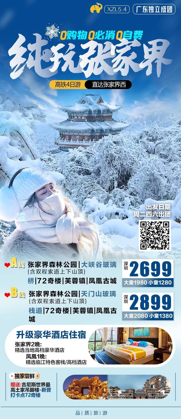 【12月湖南】芙蓉古镇+凤凰古城/坡子街/张家界国家森林公园/张家界大峡谷/天门山·玻璃栈道/宝峰湖/莽山·五指峰/高椅岭