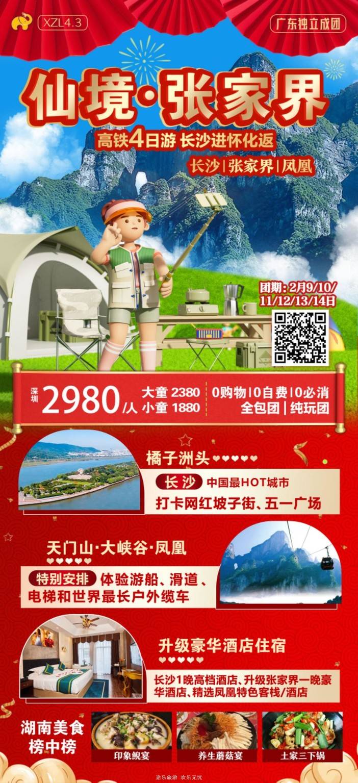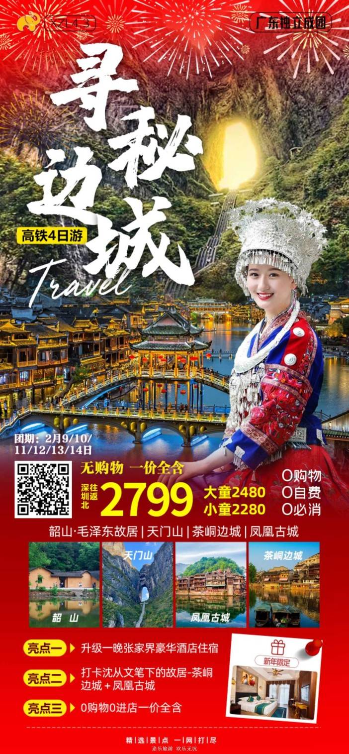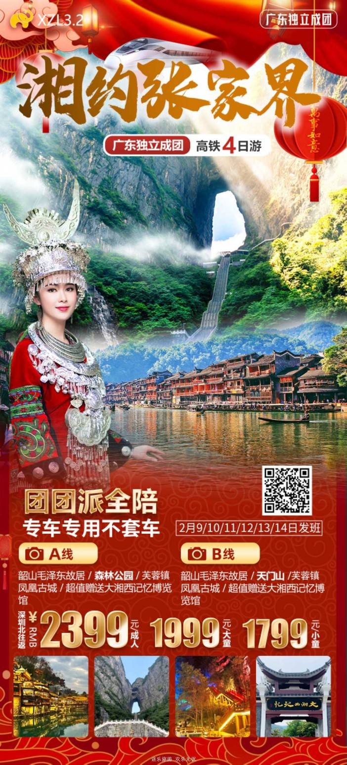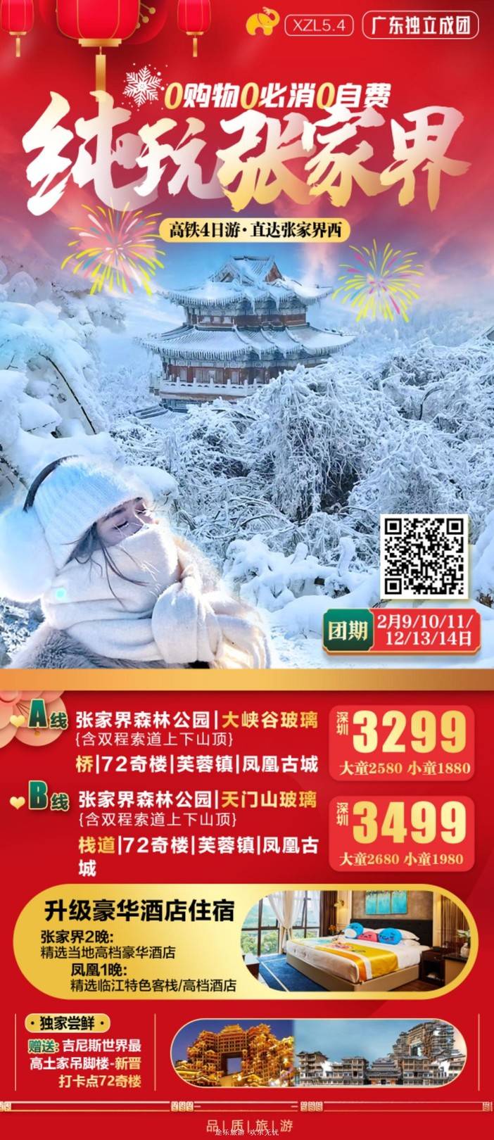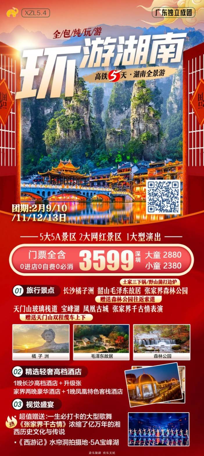 【春节湖南】芙蓉古镇+凤凰古城/坡子街/张家界国家森林公园/张家界大峡谷/天门山·玻璃栈道/宝峰湖/莽山·五指峰/高椅岭