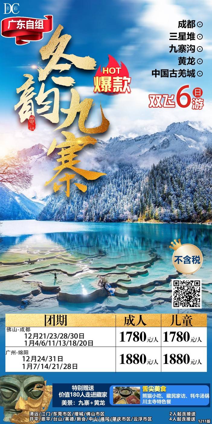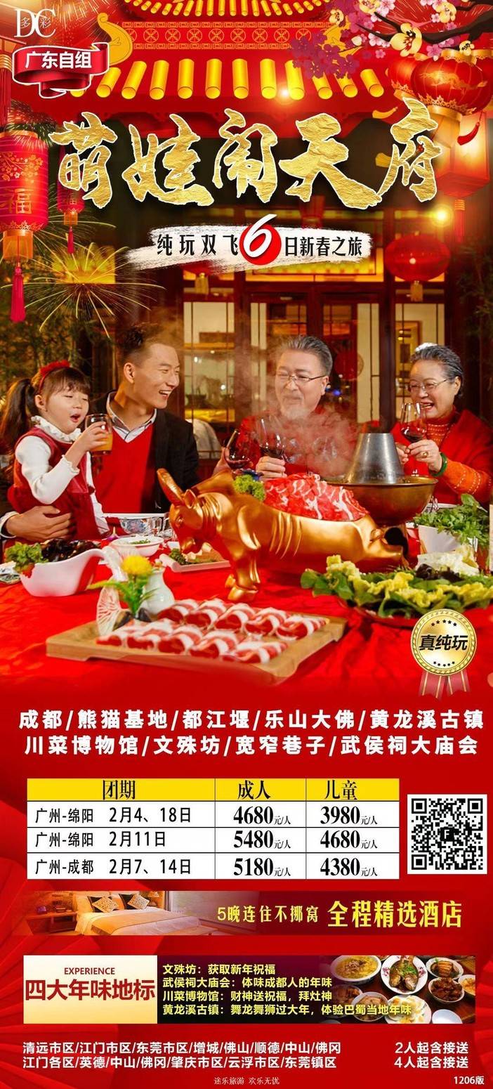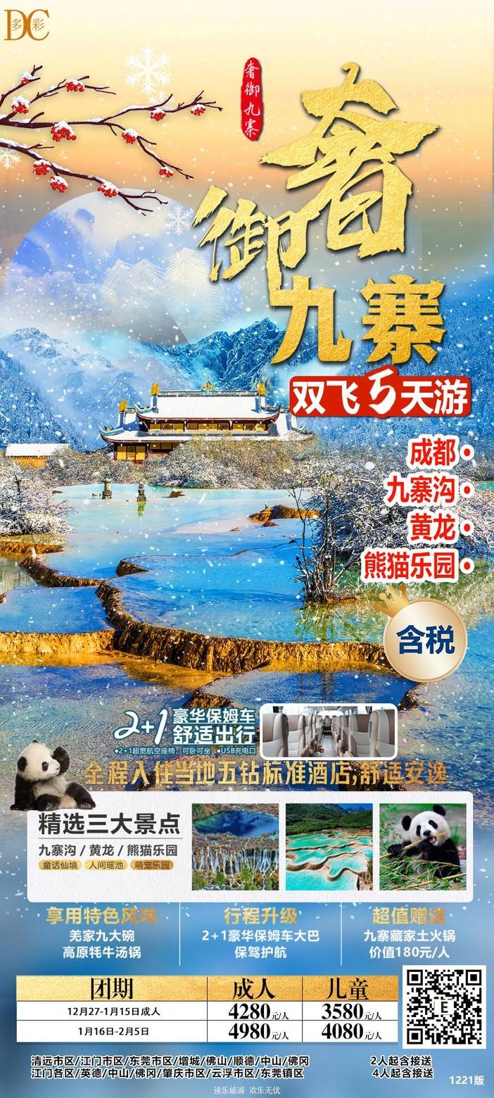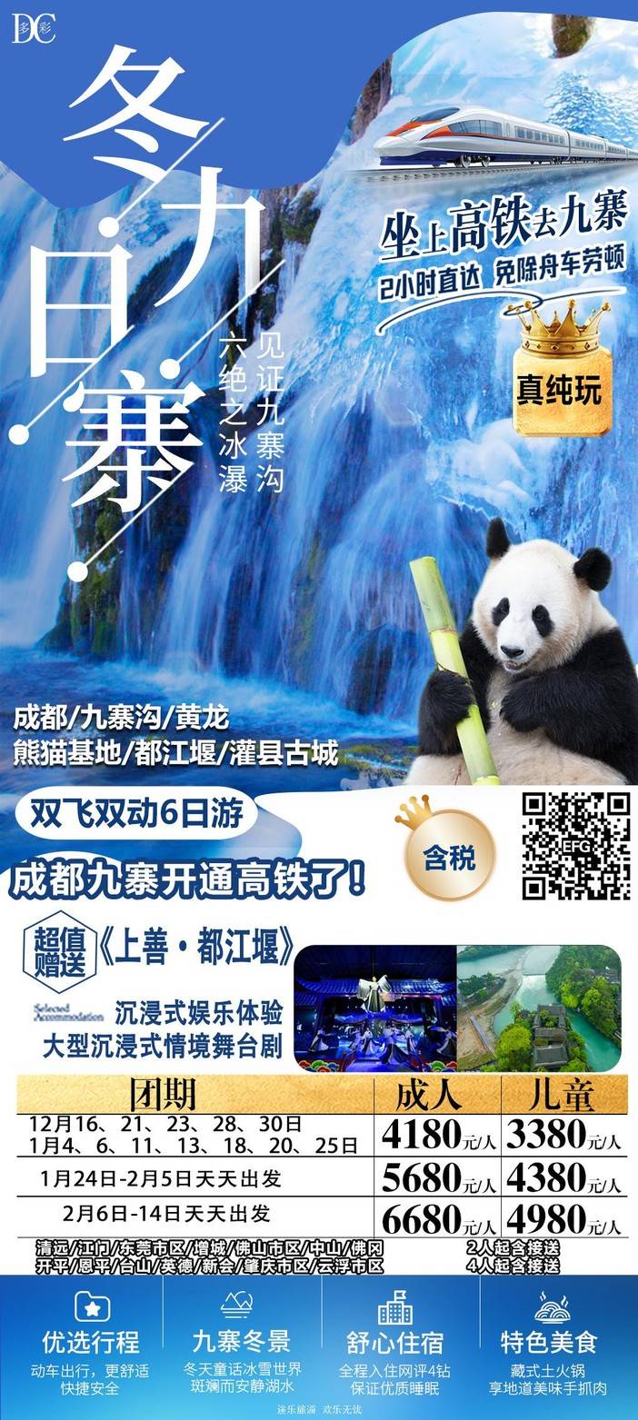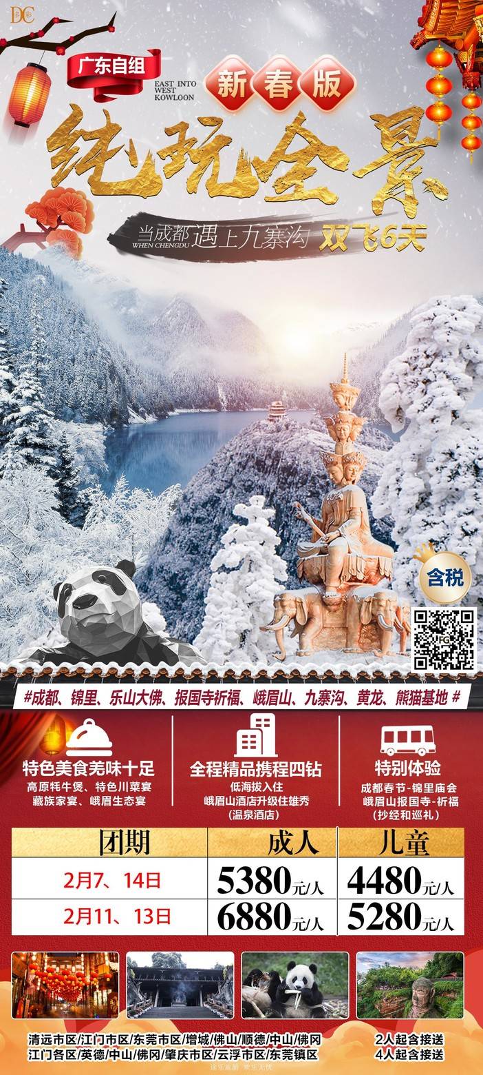 【春节四川】三星堆/熊猫乐园/九寨沟/黄龙/中国古羌城/峨眉山/稻城亚丁/木格措/都江堰/泸定桥/重庆李子坝/观音桥/九黎城/乌江画廊