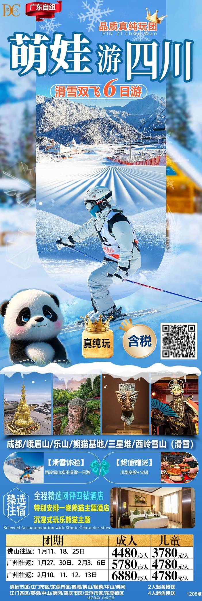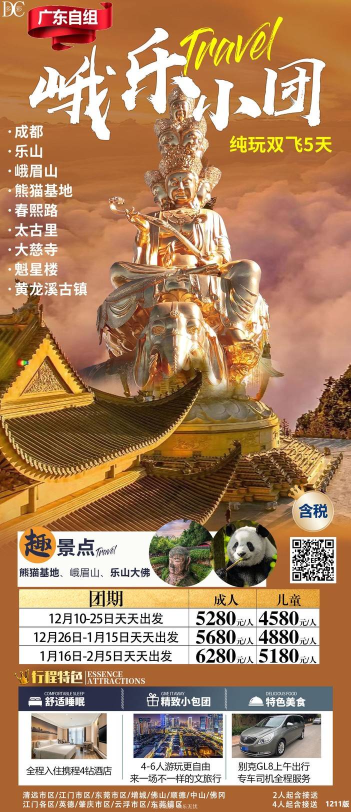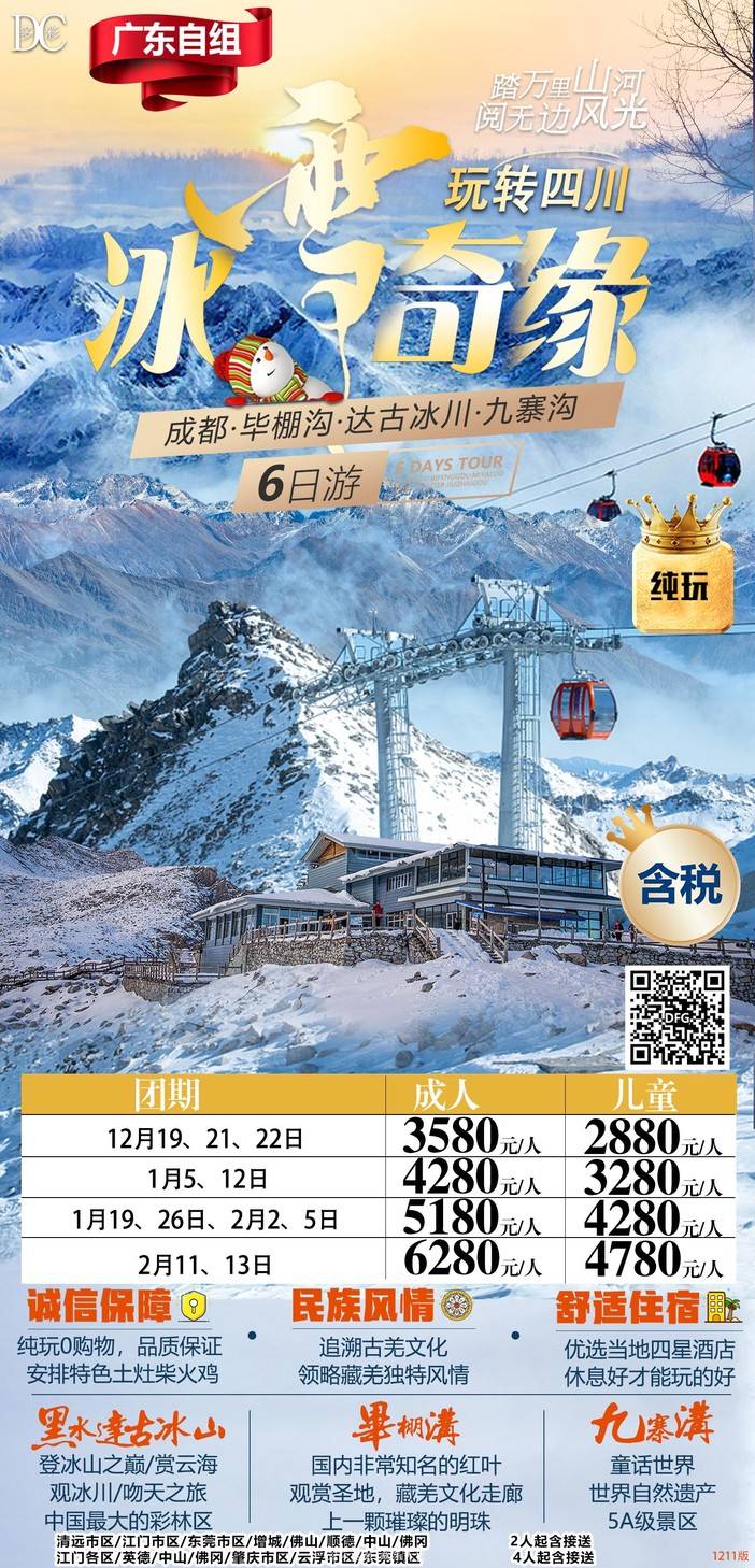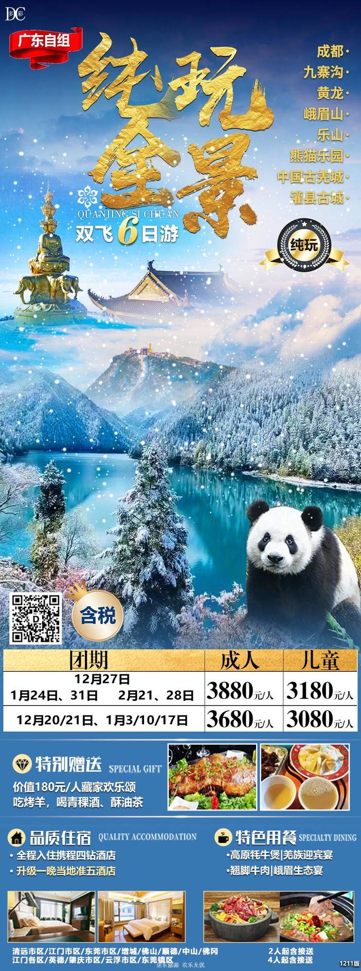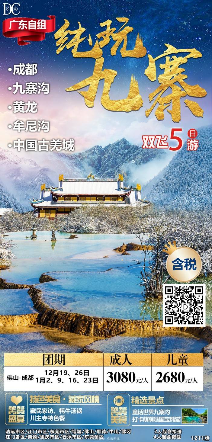 【春节四川】三星堆/熊猫乐园/九寨沟/黄龙/中国古羌城/峨眉山/稻城亚丁/木格措/都江堰/泸定桥/重庆李子坝/观音桥/九黎城/乌江画廊