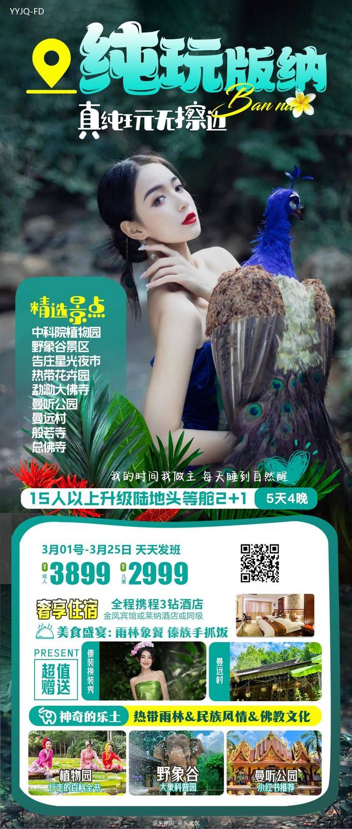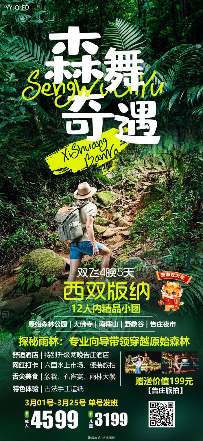 【3月云南】【西双版纳/腾冲】中科植物园/野象谷/告庄星光夜市/热带花卉园/大佛寺/曼听公园/曼远村/般若寺/总佛寺/傣装旅拍/象餐/孔雀宴