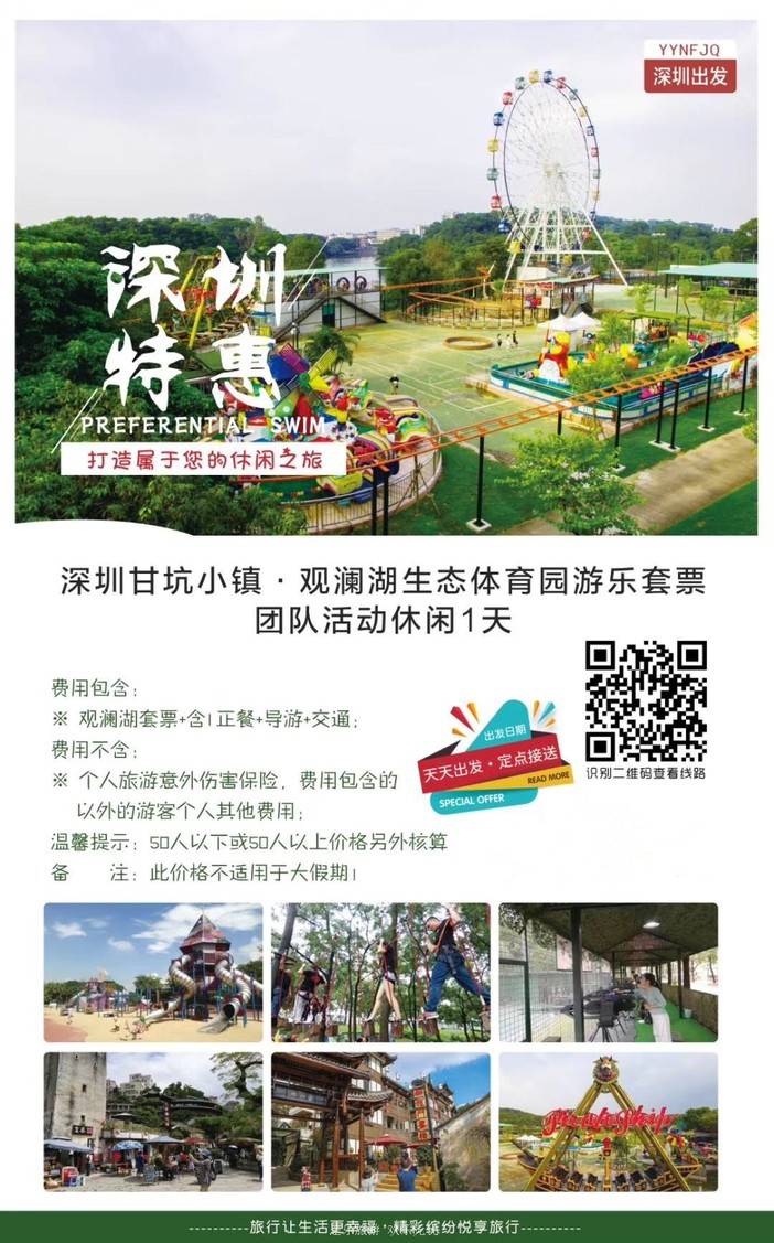 1、【深圳1天】甘坑小镇、观澜观澜湖生态体育园游乐套票+团队活动休闲1天