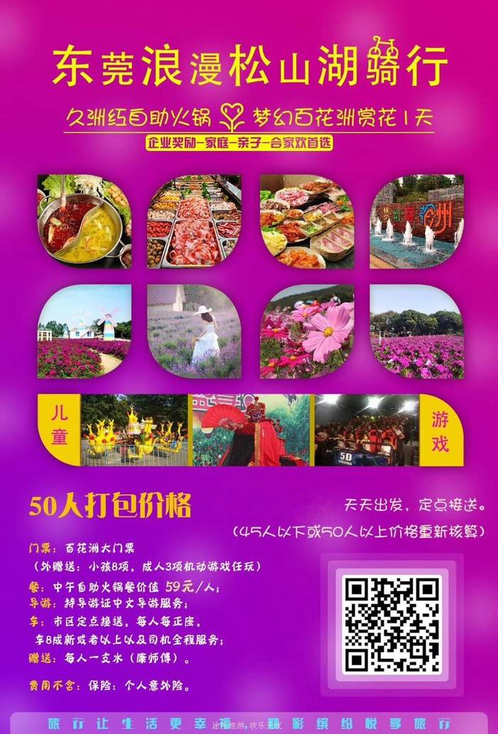 5、【东莞1天】浪漫松山湖骑行、久洲红自助火锅、梦幻百花洲赏花1天·赏花
