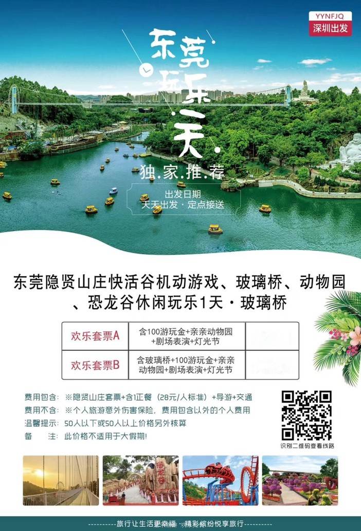 9、【东莞1天】隐贤山庄快活谷机动游戏、3D玻璃桥、动物园、恐龙谷休闲玩乐1天