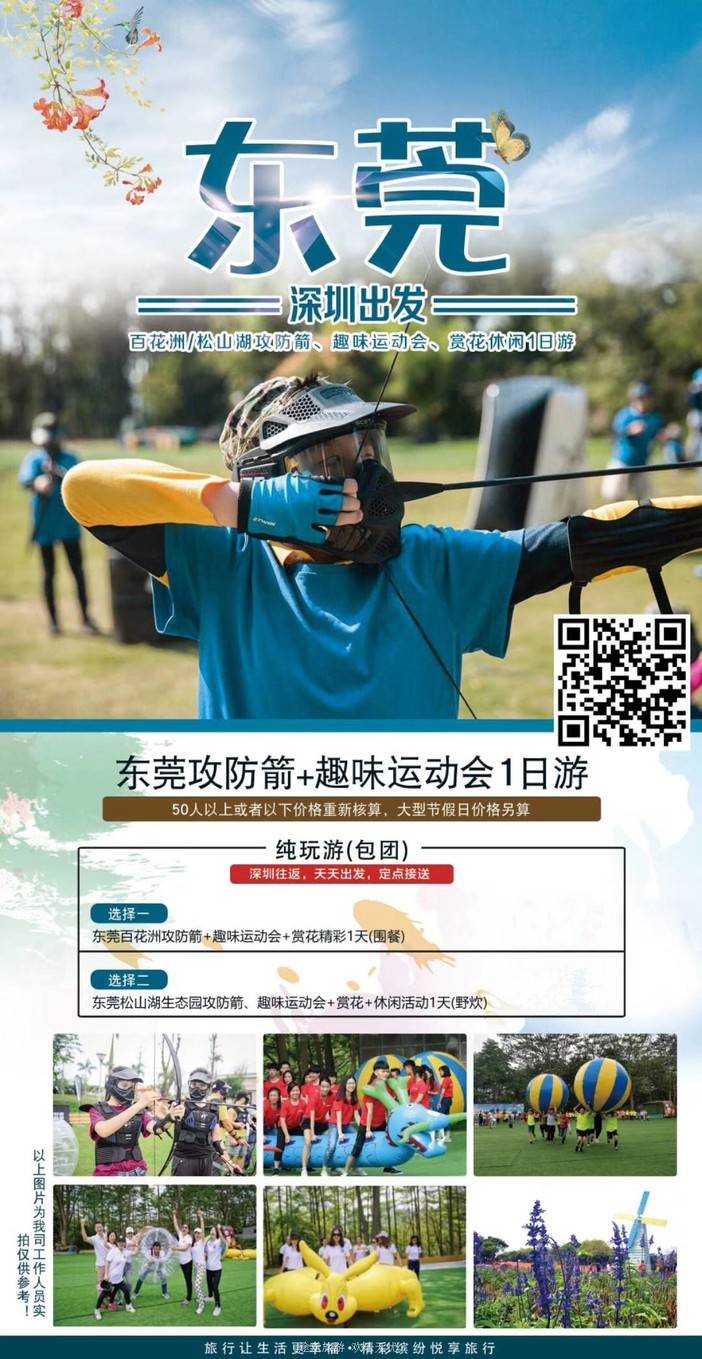11、【东莞团建1天】百花洲攻防箭、趣味运动会、赏花精彩1天·围餐/野炊+攻防箭