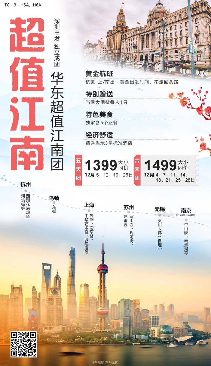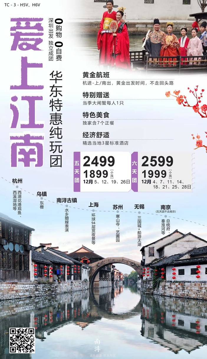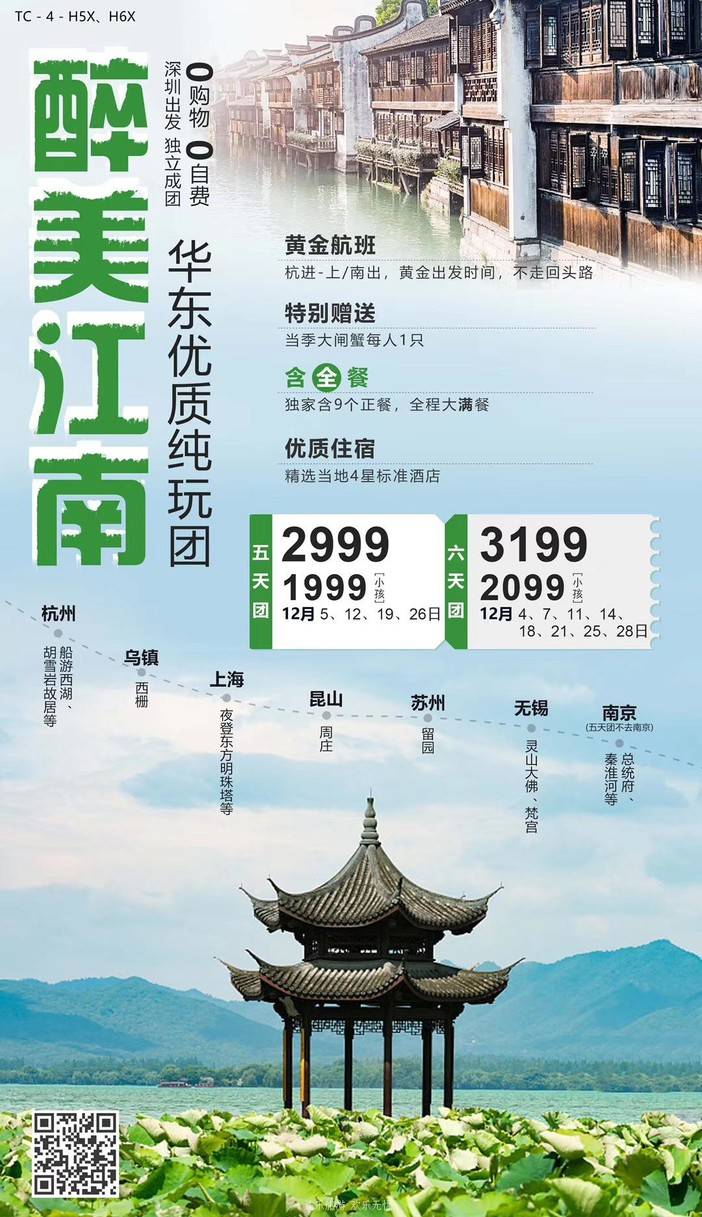 12月华东--江南路线,深圳出发。