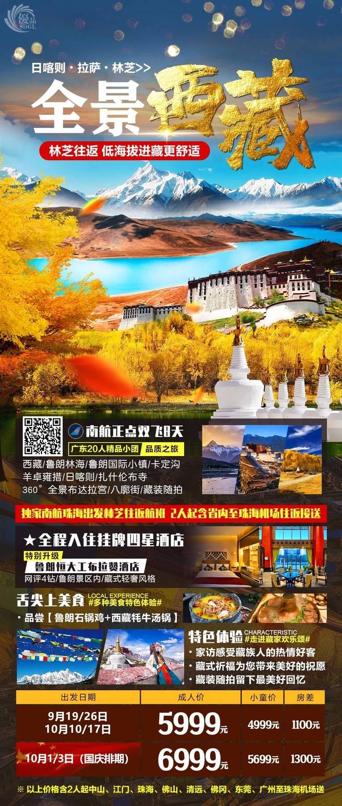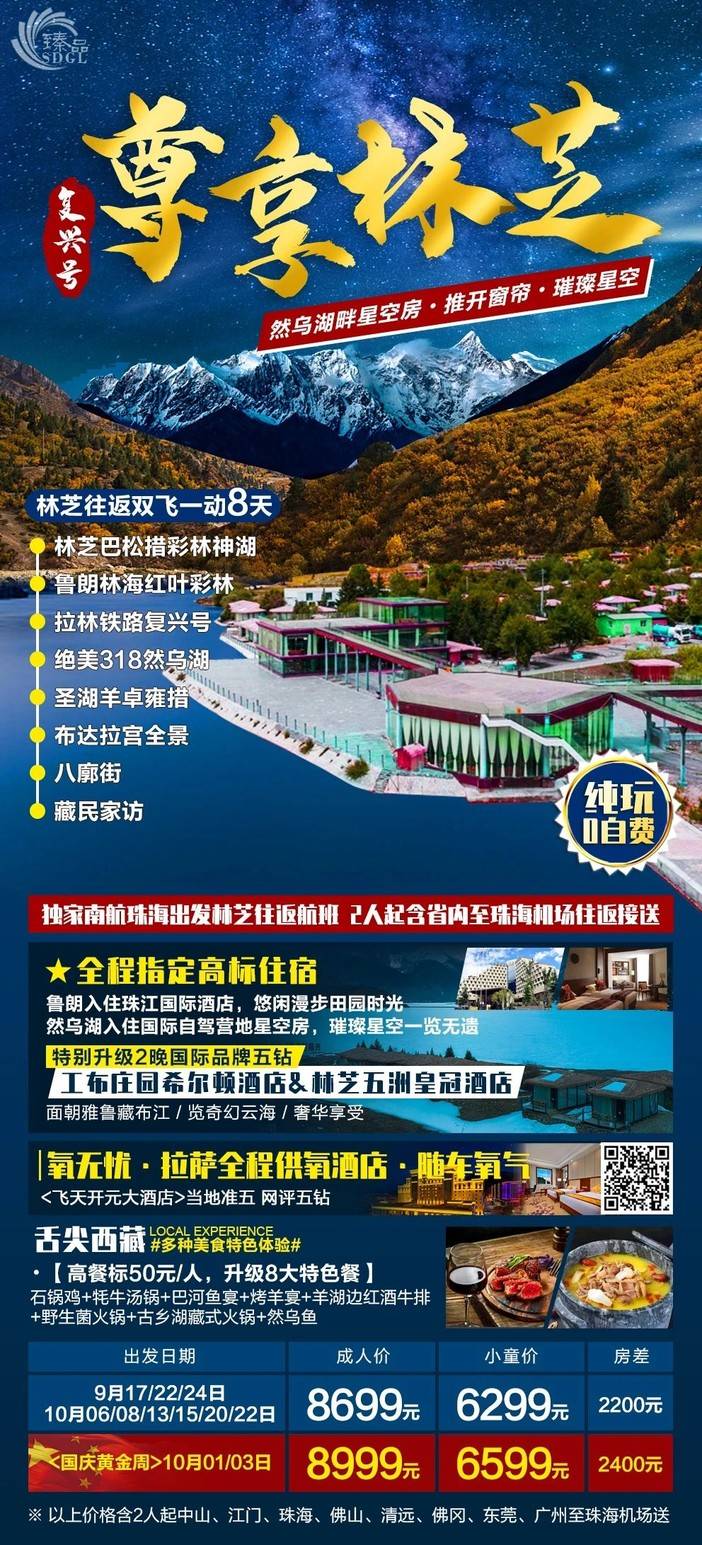 全程入住当地五星+1晚大峡谷观景房+1晚鲁朗五钻珠江国际