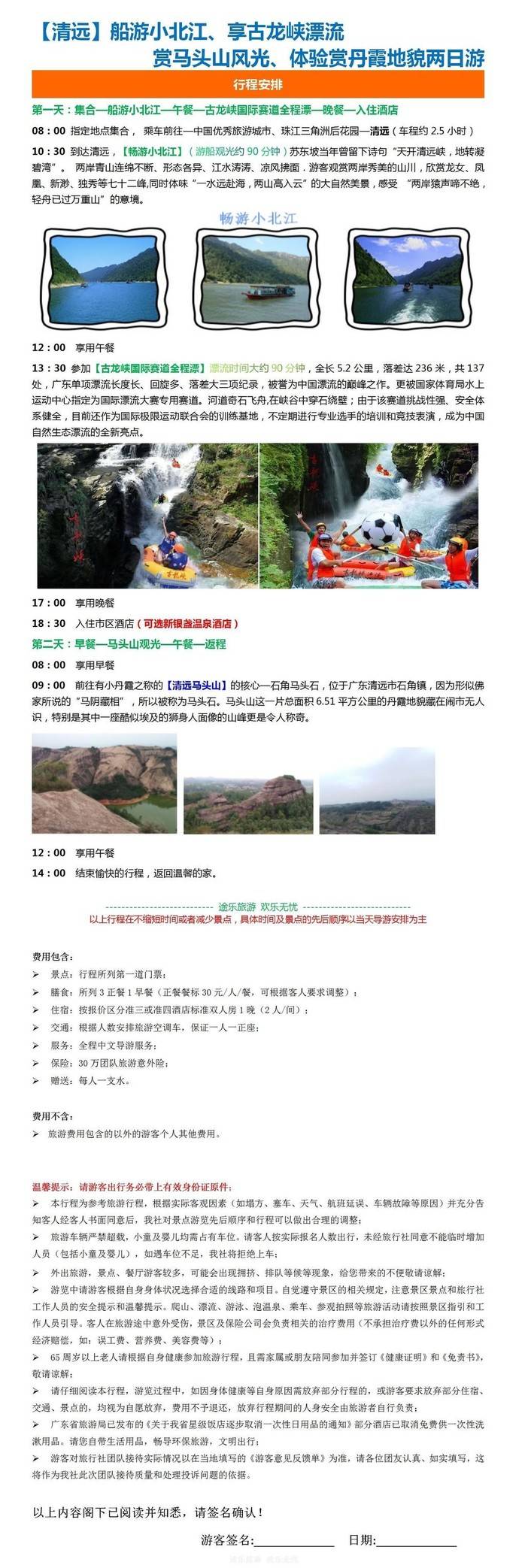 【清远】船游小北江、享古龙峡漂流、赏马头山风光、体验赏丹霞地貌两日游
