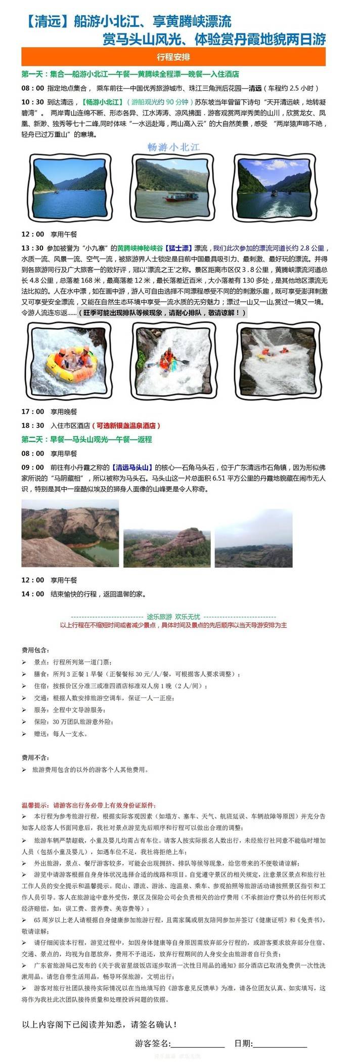 【清远】船游小北江、享黄腾峡漂流、赏马头山风光、体验赏丹霞地貌两日游