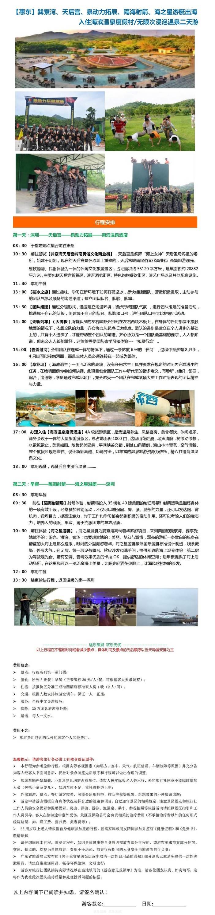 【惠东】巽寮湾、天后宫、泉动力拓展、隔海射箭、海之星游艇出海 入住海滨温泉度假村/无限次浸泡温泉二天游