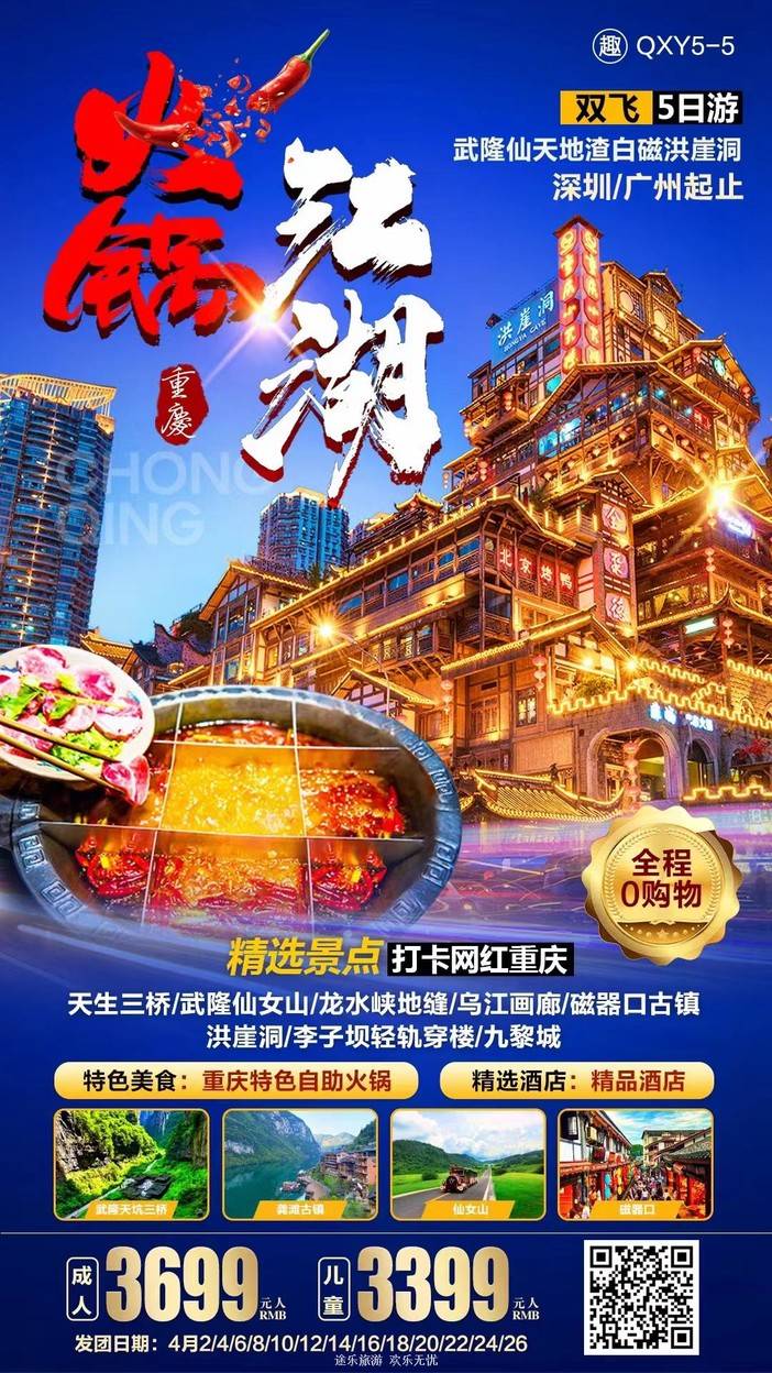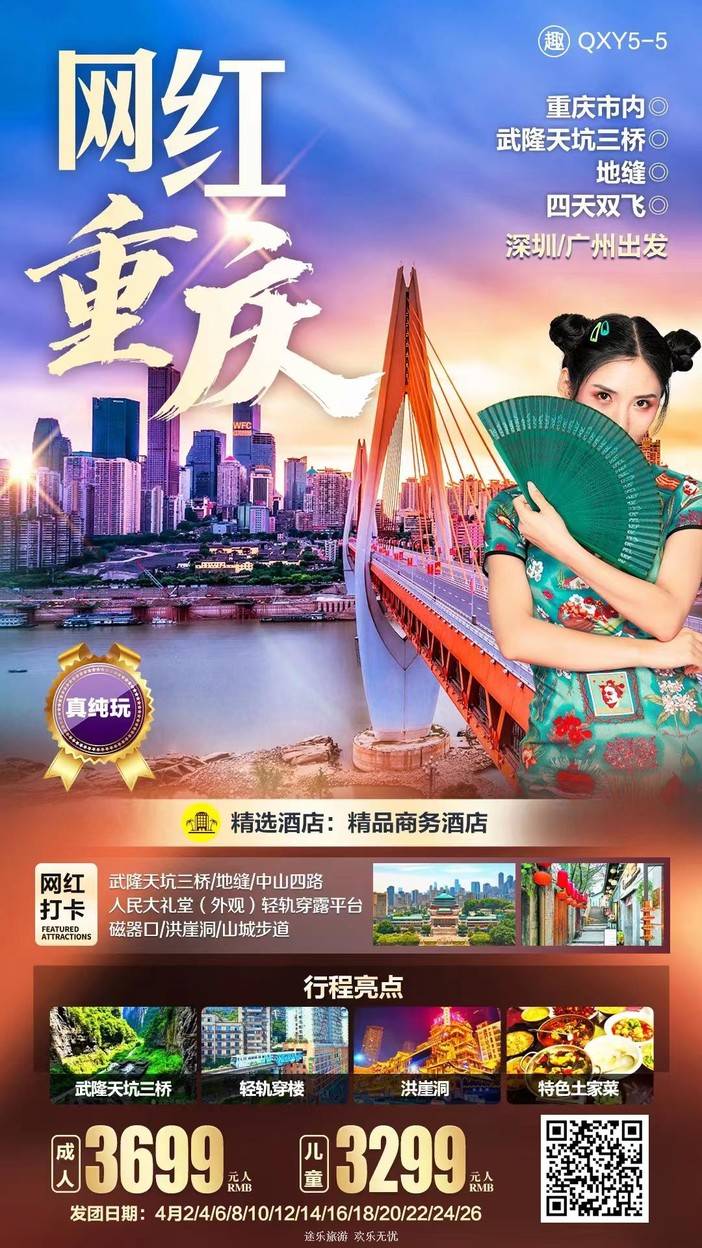【4月重庆】双飞往返 武隆天坑三桥/武隆仙女山/龙水峡地缝/乌江画廊/洪崖洞/九黎城/轻轨穿楼 [复制链接]