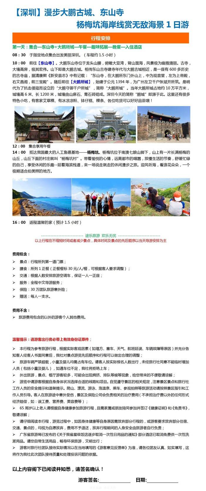 【深圳】漫步大鹏古城、东山寺 杨梅坑海岸线赏无敌海景1日游(含午餐)
