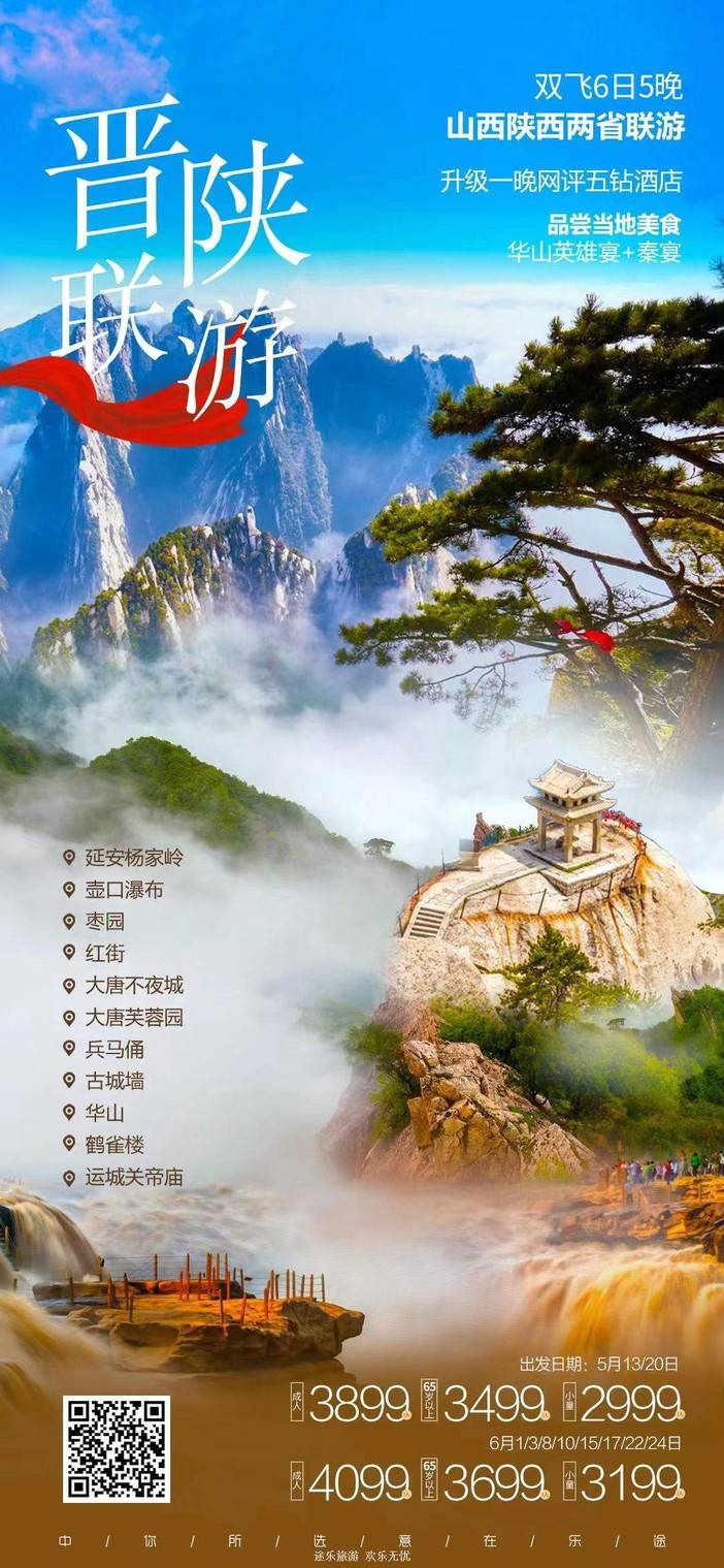 【5月陕西】 联游路线 双飞往返 大唐不夜城/大唐芙蓉园/西安博物院/兵马俑/华山/壶口瀑布/鹤雀楼/永兴坊/运城关帝庙/梦幻水洞群/枣园/靖边波浪谷 [复制链接]