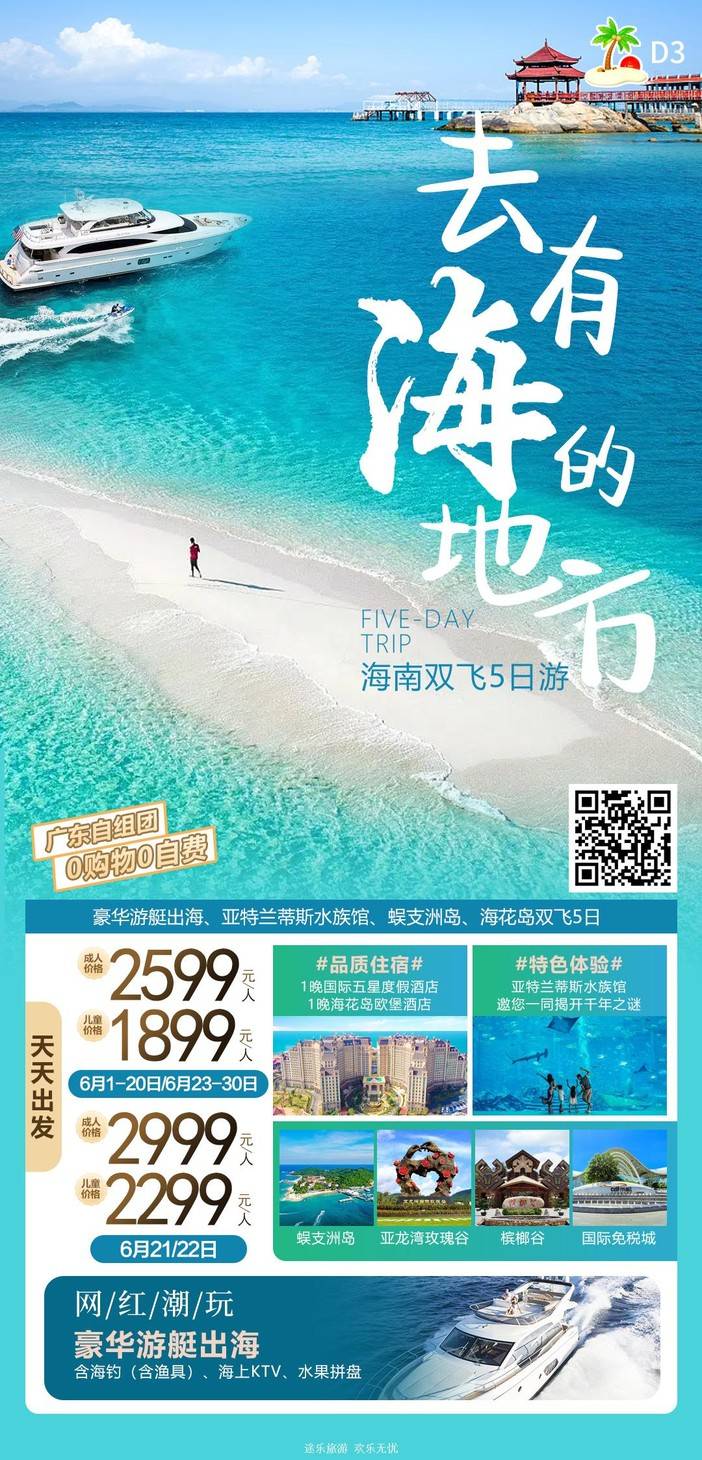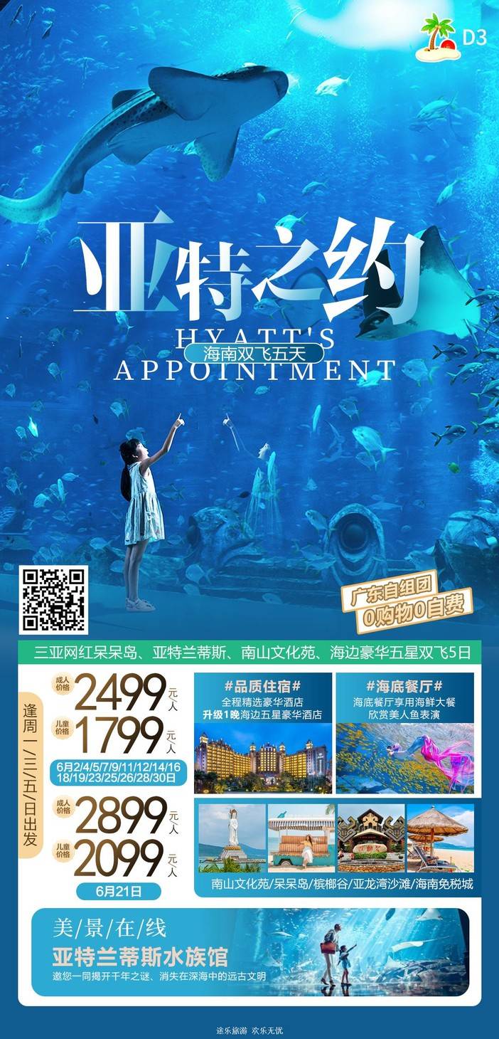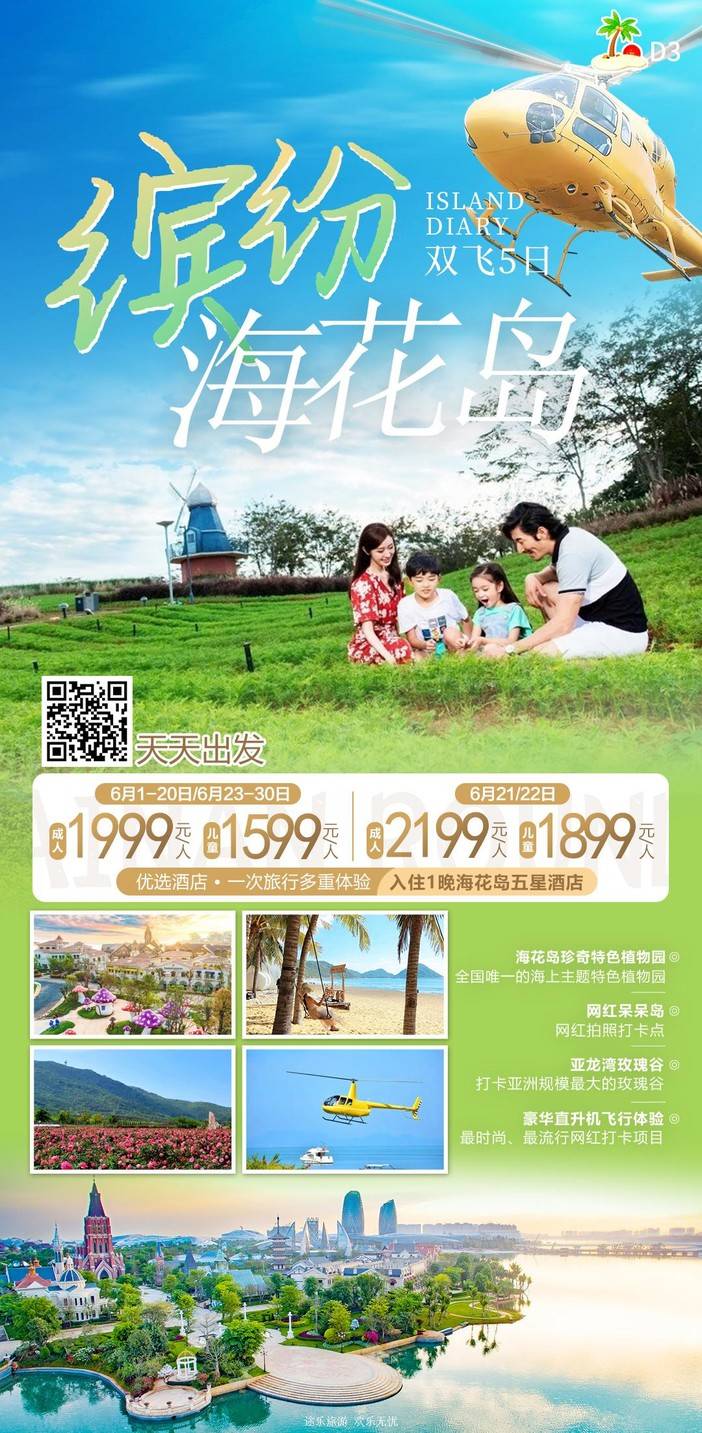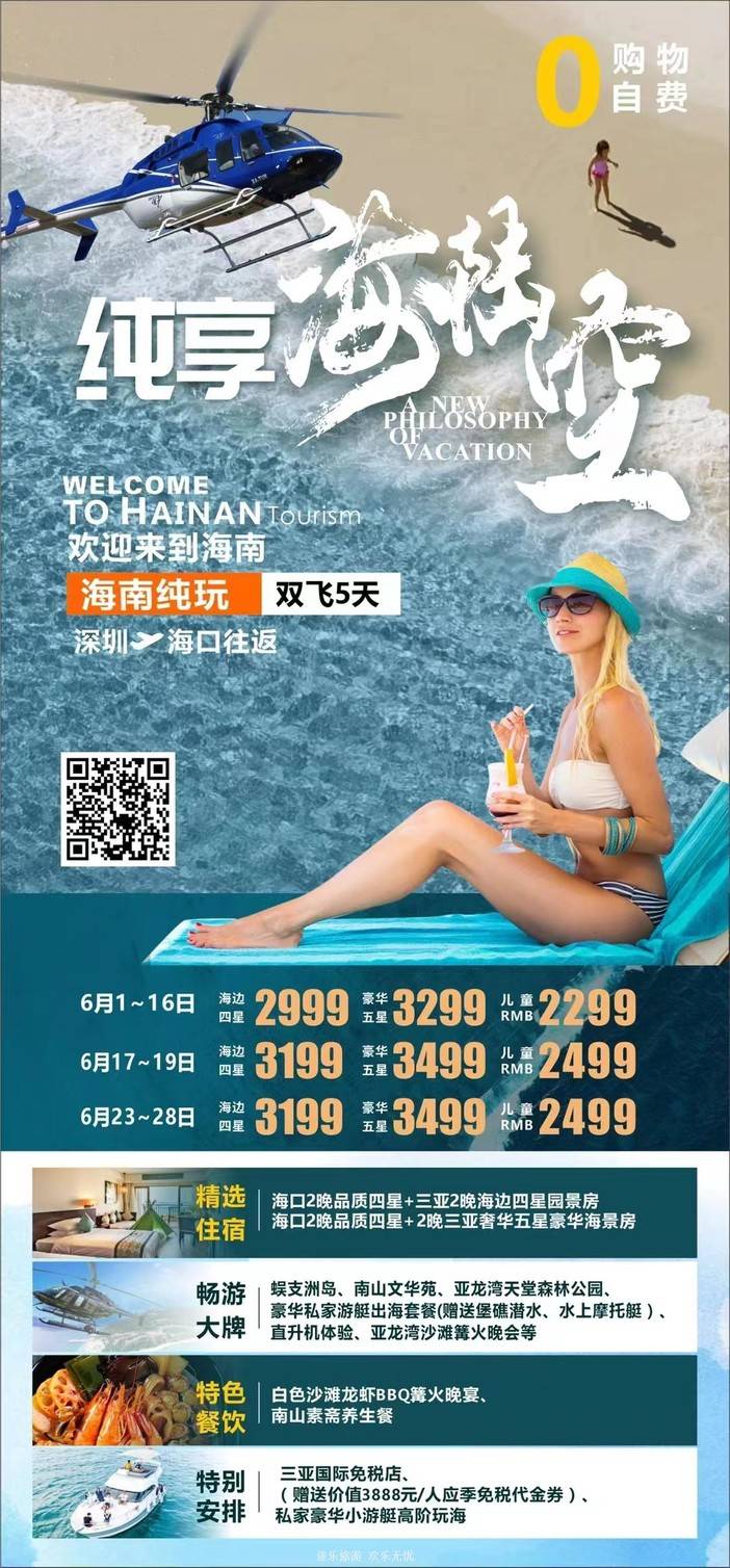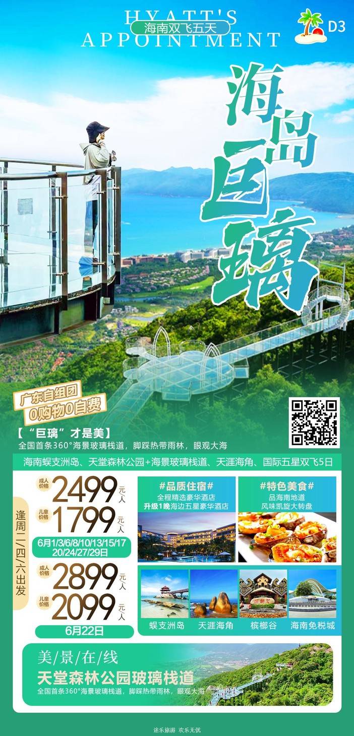 【6月海南】 天堂森林公园/亚特兰蒂斯/南山文化苑/亚龙湾国际玫瑰谷/呆呆岛/蜈支洲岛/南湾猴岛/分界洲岛/西岛/槟榔谷/天涯海角/五指山/豪华直升机飞行体验 [复制链接]