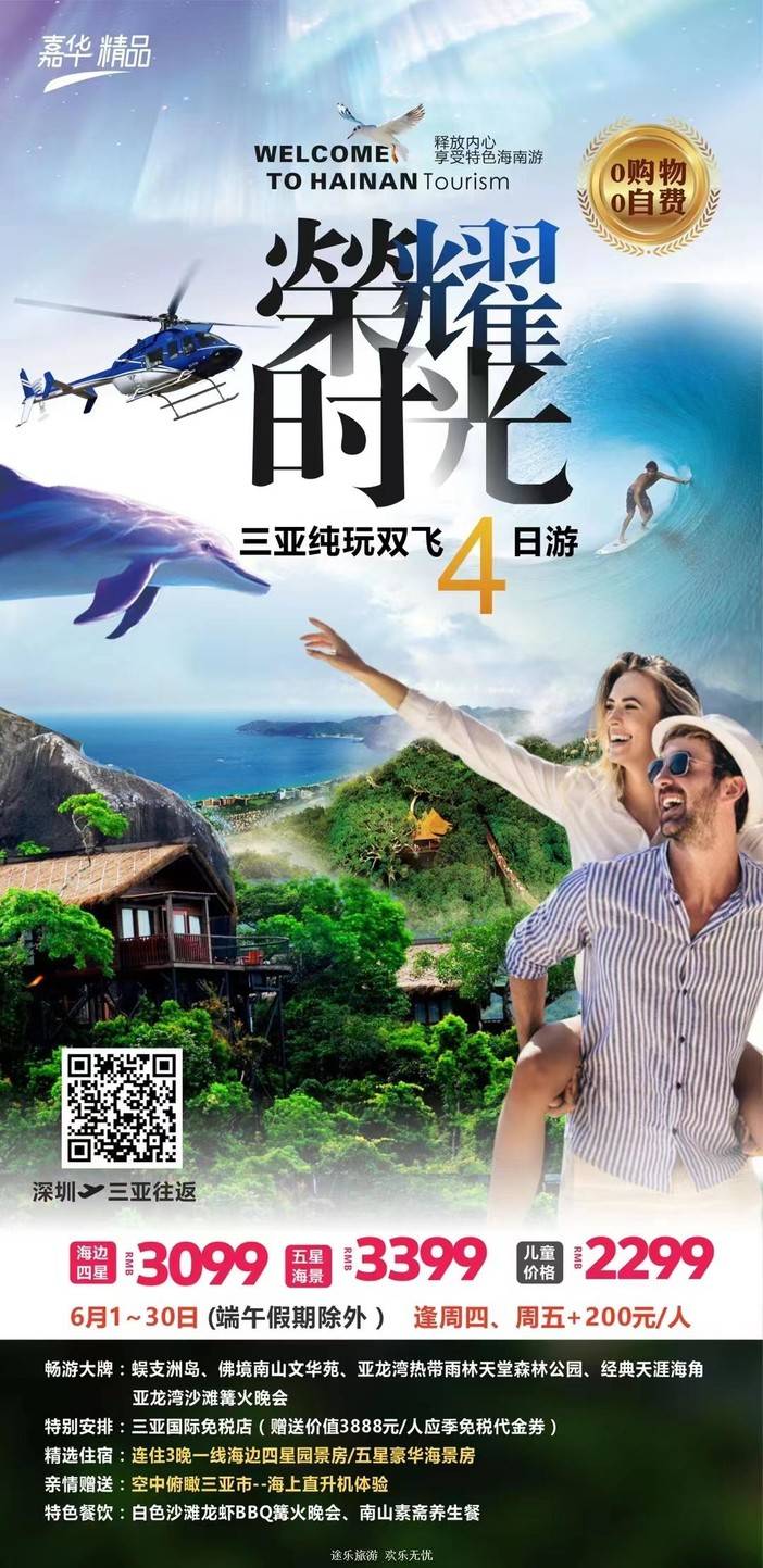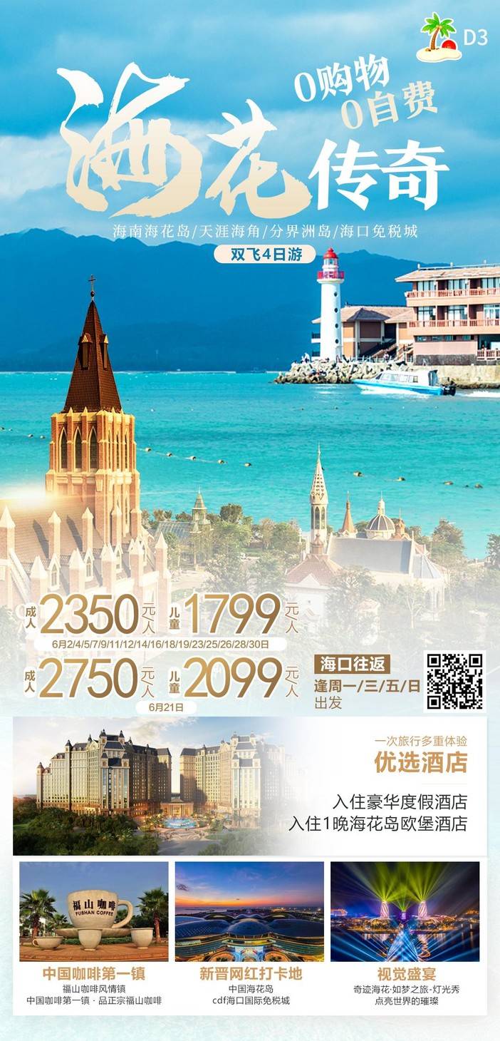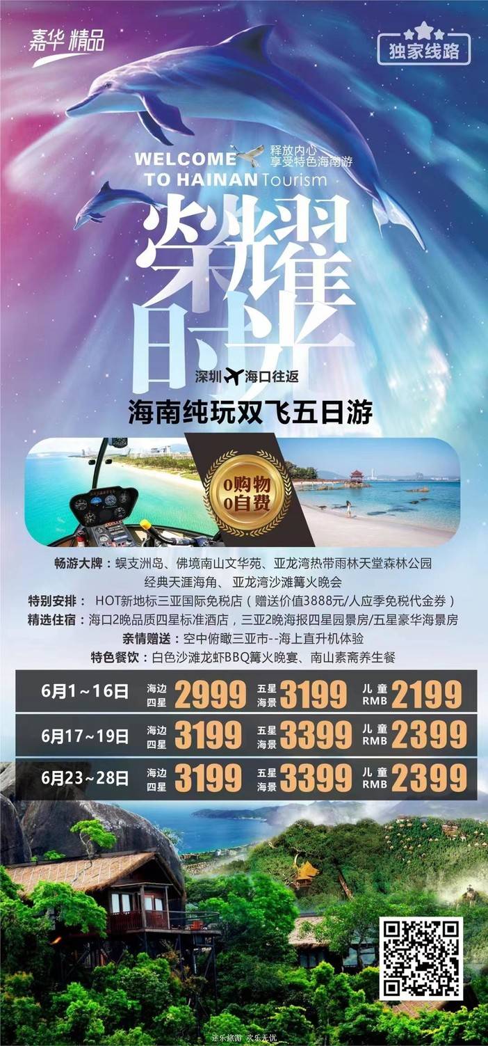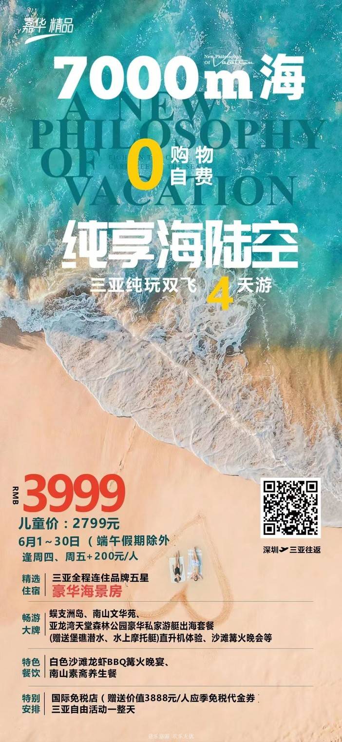 【6月海南】 天堂森林公园/亚特兰蒂斯/南山文化苑/亚龙湾国际玫瑰谷/呆呆岛/蜈支洲岛/南湾猴岛/分界洲岛/西岛/槟榔谷/天涯海角/五指山/豪华直升机飞行体验 [复制链接]