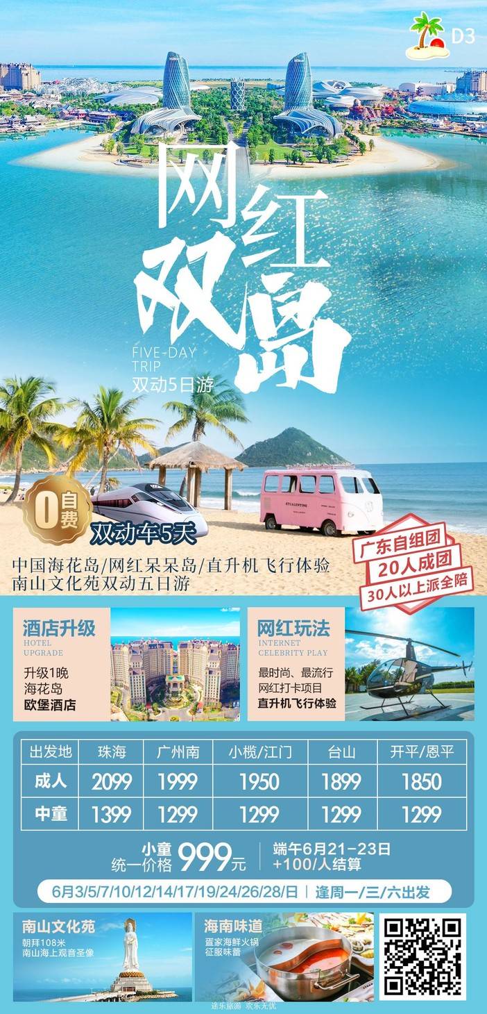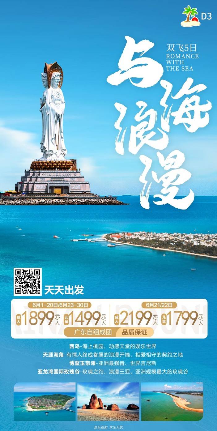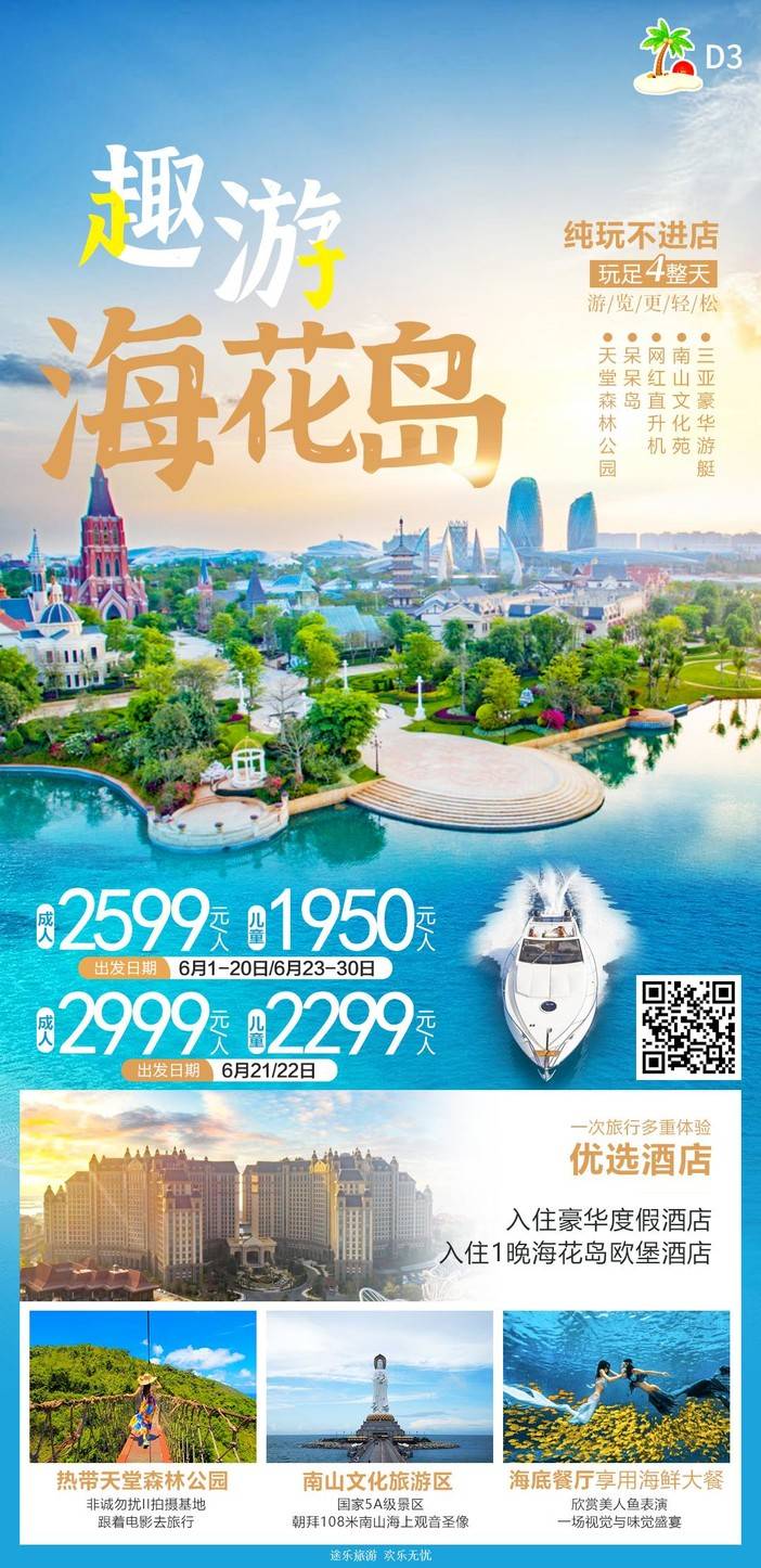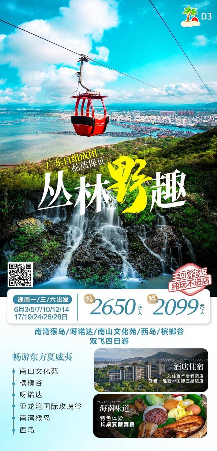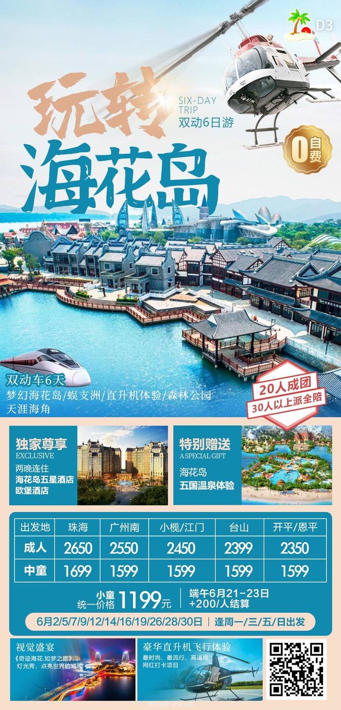 【6月海南】 天堂森林公园/亚特兰蒂斯/南山文化苑/亚龙湾国际玫瑰谷/呆呆岛/蜈支洲岛/南湾猴岛/分界洲岛/西岛/槟榔谷/天涯海角/五指山/豪华直升机飞行体验 [复制链接]