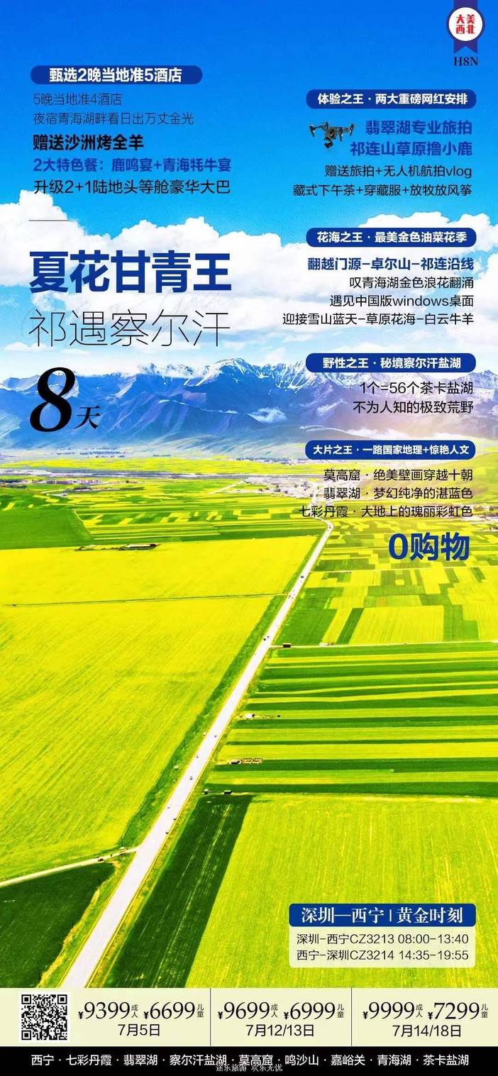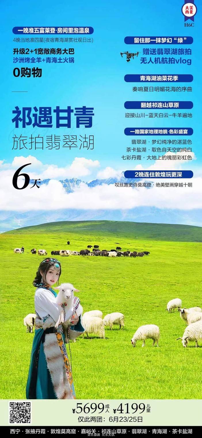 【6-7月青甘大环线】敦煌莫高窟/七彩丹霞/翡翠湖/水上雅丹/莫高窟/鸣沙山/嘉峪关/青海湖/茶卡盐湖/祁连山草原 [复制链接]
