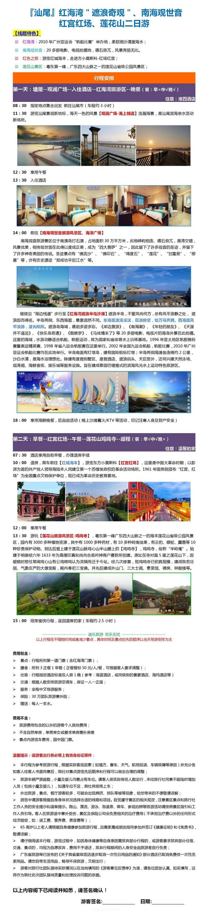 【汕尾】红海湾“遮浪奇观“、南海观世音红宫红场、莲花山两日游
