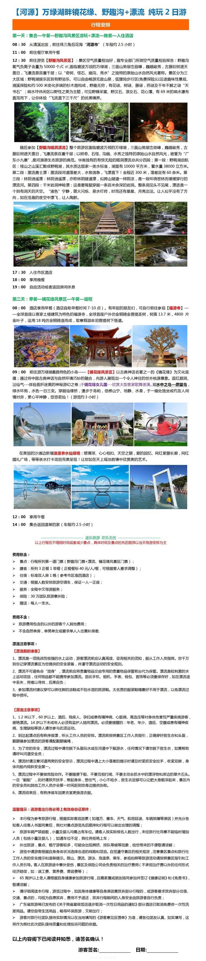 【河源】万绿湖畔镜花缘、野趣沟+漂流 纯玩两日游