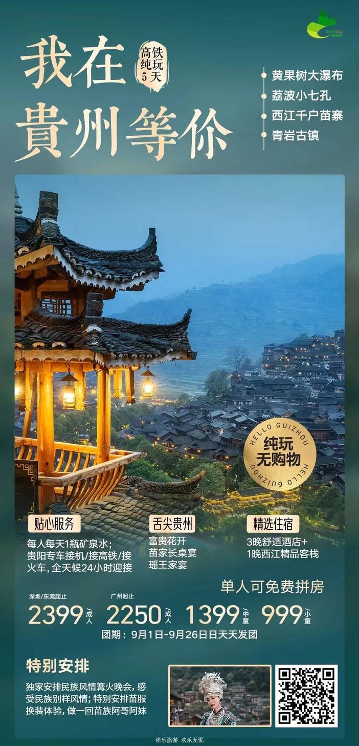 【9月贵州】黄果树瀑布/西江千户苗寨/荔波大小七孔/青岩古城/镇远古城/下司古镇 /梵净山/甲秀楼 [复制链接]