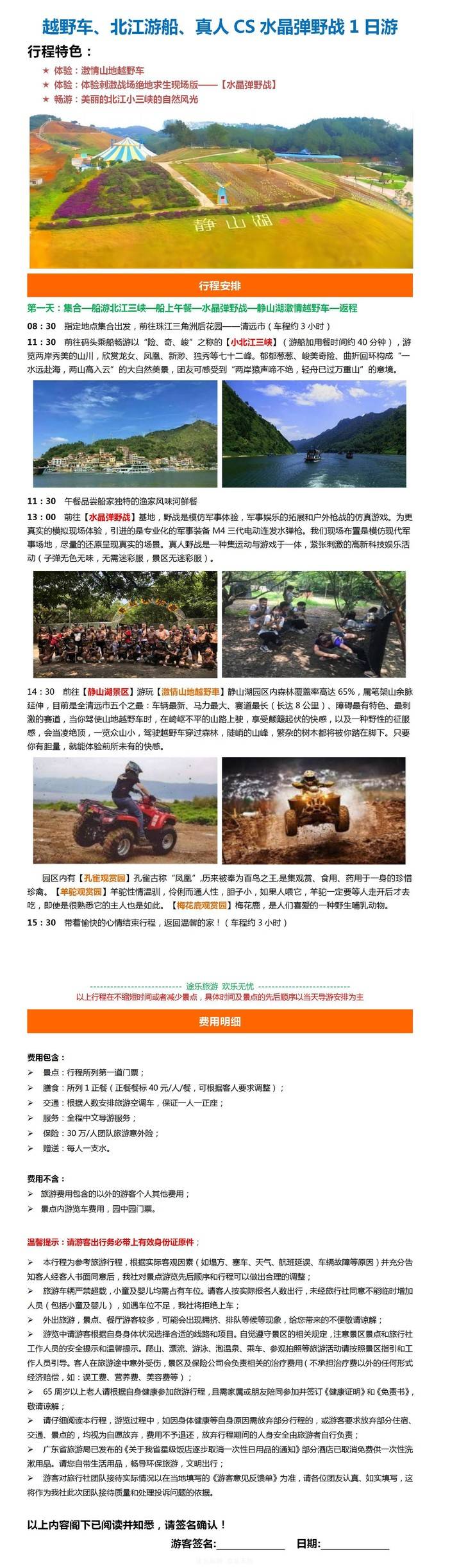 【清远】越野车、北江游船、真人CS水晶弹野战1日游
