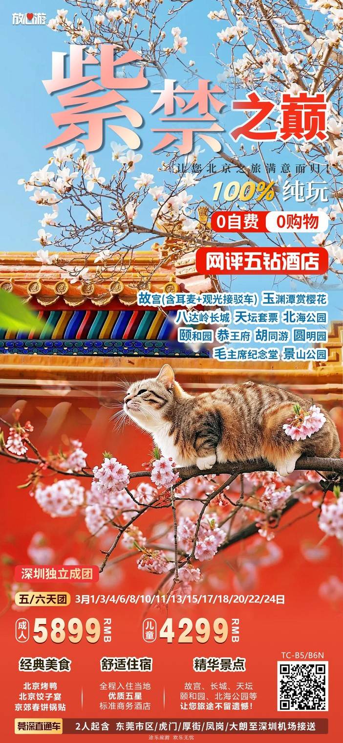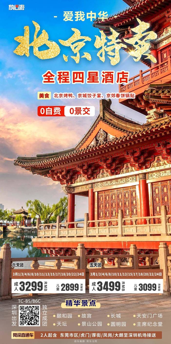 【3月北京】天安门广场/毛主席纪念堂/故宫博物院/天坛/长城/颐和园/圆明园/奥林匹克公园/环球影城/升旗仪式/什刹海/前门大街/后海胡同