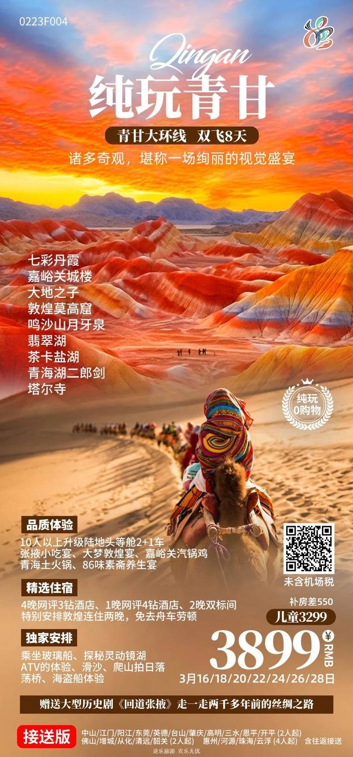 【3月西北(甘肃、青海、宁夏)】七彩丹霞、嘉峪关、莫高窟、月牙泉、茶卡盐湖、青海湖、塔尔寺、水上雅丹、可可西里、最美U型公路