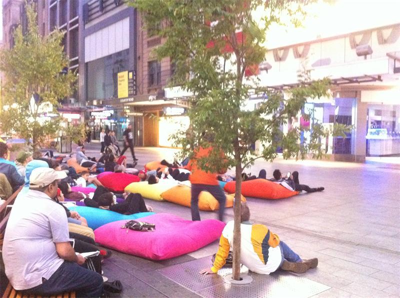 维多利亚女王市场 维多利亚女王市场离唐人街不远,已经有一百多年的历史,现在已经成为澳洲乃至南半球规模最大的露天市场。市场里从海鲜、生肉到蔬菜、水果,从衣服、鞋帽到旅游纪念品,商品一应俱全。市场平时下午5点关闭,但每个周三晚上17:00-22:00有夜市,里面除了有美食以外,现场还会有一些乐队表演。在市场关门前,可以去买当天打折的比较新鲜的水果、蔬菜、甚至肉类,价格比超市便宜1/3。桃子1.5澳洲元1公斤,特别是那硕大的澳洲芒果,5澳洲元一大箱,平均一个只要人民币约3元多一点,那味道真是清香醇甜,回味无穷,两个就可以吃饱肚子。 联邦广场是墨尔本最大的公众广场,占地面积3.2公顷,位于墨尔本市中心,雅拉河河畔,也就是中央火车站对面。联邦广场是一个混合型多功能的场所,有16个咖啡厅;酒吧和餐馆;还有精品店和游客服务中心;自行车租赁;巴士和游轮游览;免费无线上网以及旅游订票服务,为游客提供有关游览墨尔本和维多利亚州的大量信息。广场的建筑风格独特,外墙是黄蓝相间不规则大片的多边形墙体,颜色与格调洋溢着浓厚的澳大利亚土著文化色彩,体现着澳大利亚国民对源远流长的土著文化和土著居民祖辈的尊重。广场上经常举办多种欢庆活动,也是墨尔本每年除夕新年倒数的经典地点之一,这里的巨型银幕经常公开直播重要的体育赛事,是游客和本地居民休闲聚集的好场所。 当地人在联邦广场 |