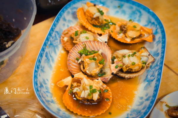 半夜12点后在住处楼下的小店铺买东西的时候,店老板操着一口闽南腔得意的跟我们说,这片老街就是不夜街,有厦门最老底子的风俗,也有厦门最本地的海鲜大排档,旅游的人去吃的拍档他们都不屑于去,在这里随便找个小店坐下,一扎冰啤,点几个海鲜,没有不好吃的。凌晨2-3点更晚上6-7点钟一样热闹。于是我从老板那里多买了两瓶啤酒,然后半信半疑的选了一家拍档点了最便宜的两个海鲜,一个是当天特价:炒黑蟹,15元,一盘两只,做法一流,蟹也是膏厚肉肥!另外一个是白灼蛏子,20元,简直就是大肥蛏啊,配点醋,无比鲜美!再买了一碗鸭肉粥,味道也别提有多好了!都是路边的无名小店。