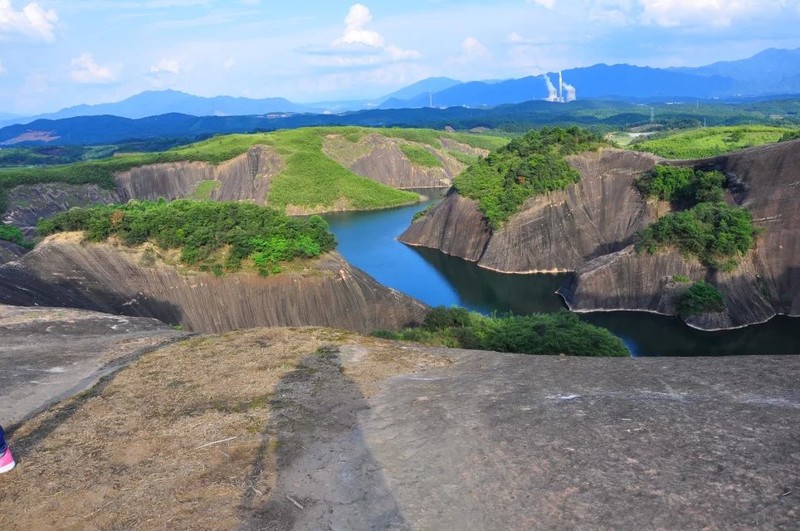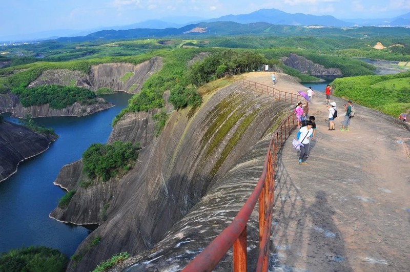 从下面入口走到大坝约10公里,太阳很晒,在二号桥吃了碗湖南米粉加蛋,10元。戴了墨镜和导汗带,有点用处。全程穿凉鞋亦可。沿途有店家提供免费洗手间,也买了饮料,照顾生意。临近大坝有个极小的瀑布。