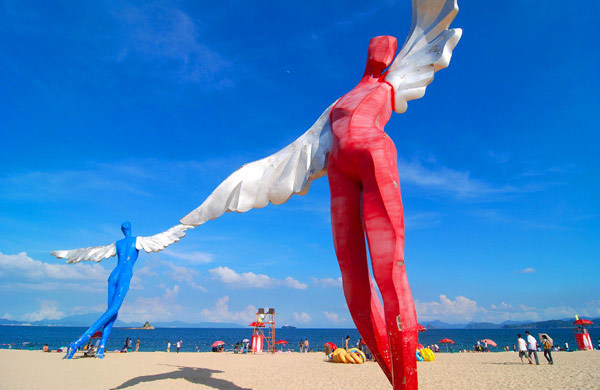 阵阵椰风,点点白帆,海水清澈,大大的“鸟人”是标志,环境好还免费,旺季时人多当然是避免不了的啦~