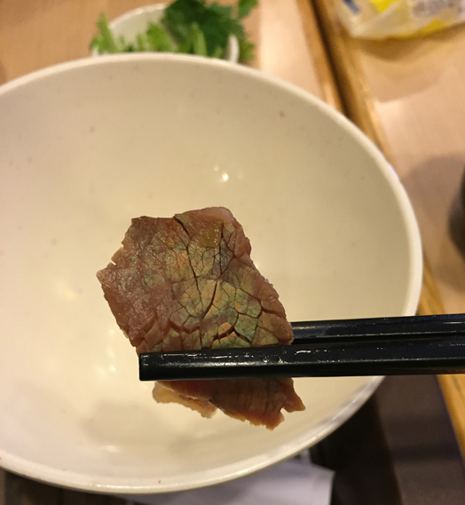 部分专家以及学者指出,牛肉发出绿色光泽可能是牛肌肉纤维被切开的横切面反射光泽,牛肉中的肌红蛋白与金属刀身接触后产生的自然光线折射现象。并非变质。