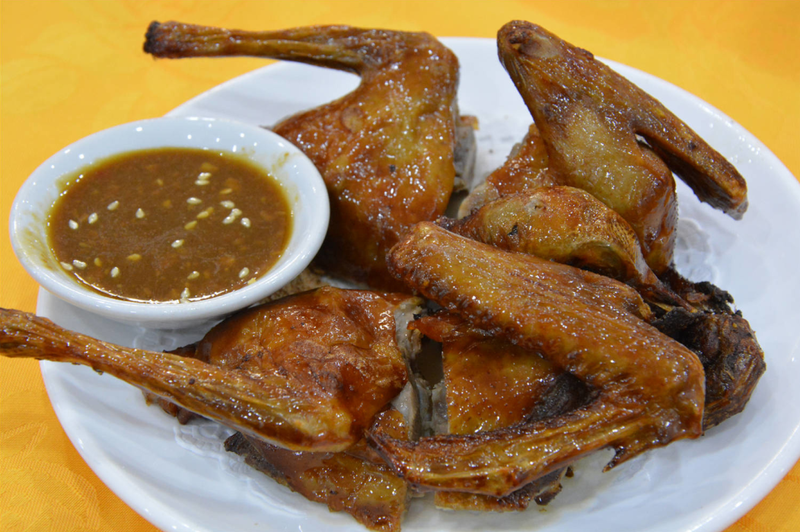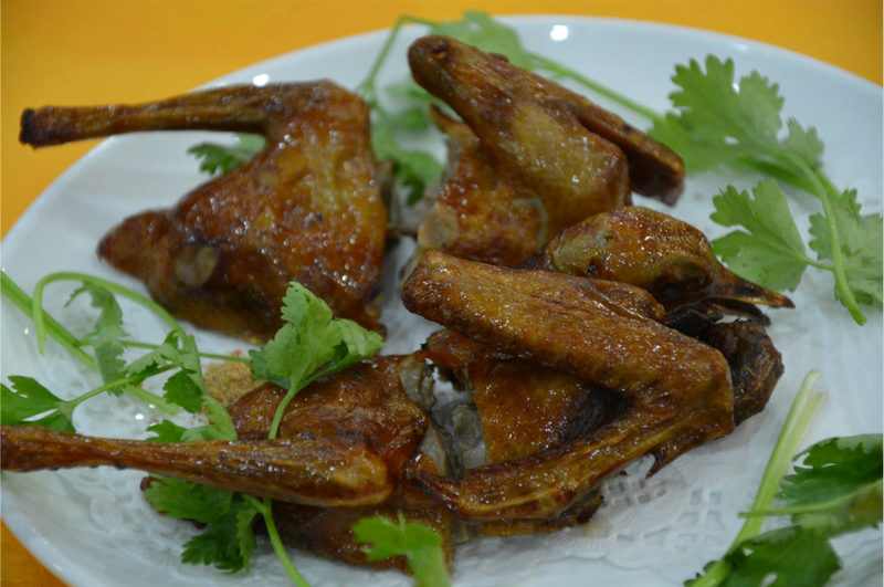 烤乳鸽。啃得好香,一人一只的来···说得我又饿了·